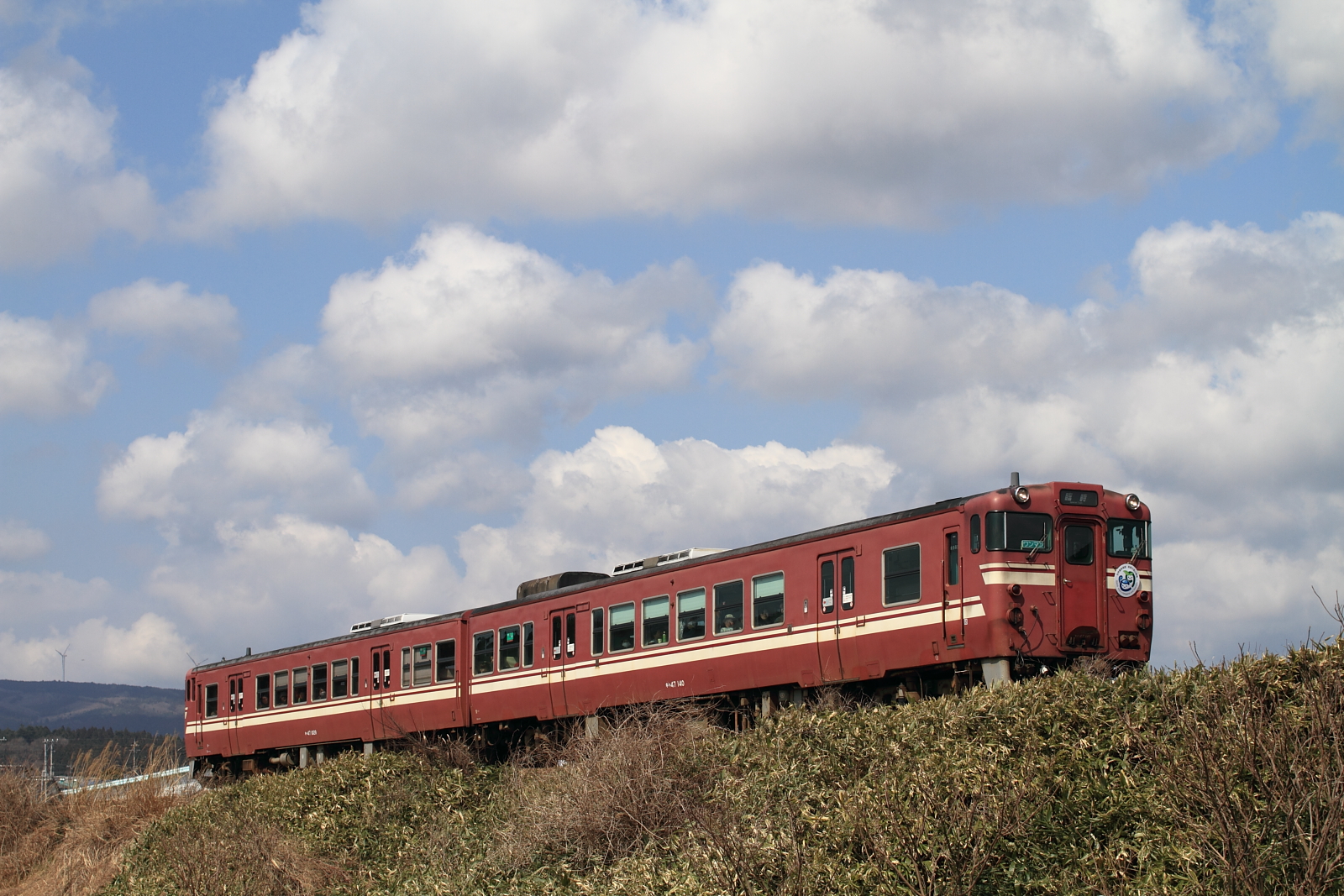 【七尾線】快速「能登の里山里海号」(キハ47)運転(2014年春)【のと鉄道】 H26.3.233月22.23日に北陸本線~七尾線~のと鉄道七尾線の直通列車、快速能登の里山里海号が運転されました。昨年同様、キハ47にヘッドマーク取り付けての運転でした。 9835D初年度ではヘッドマークステーを使用し、昨年からは運転台下にHMを付けての運転となってます。 9129D臨時「牡蠣グルメ&語り手列車」はNT202の花いろラッピング。こちらはダブルヘッドマークでの運転。 131Dマジンガー+花いろNT201の2連も記録。沿線の桜はまだまだ先のようでした。 [0回]PR