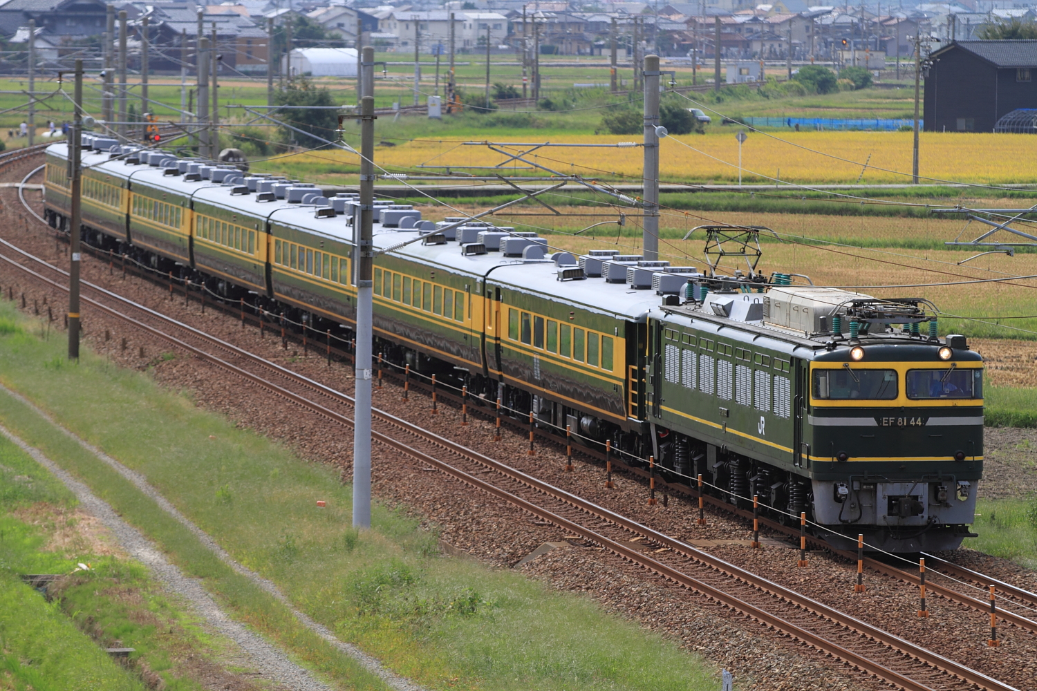 【北陸本線】EF81 44号機牽引のサロンカーなにわ撮影(往路)【サロンカーなにわ】 H29.9.23今年も「月見のおわら」として、大サロこと「サロンカーなにわ」が金沢まで運転されました。(客扱いは福井まで)都合上、往復とも1発ずつですがなんとか記録。 回9517@美川〜加賀笠間EF81 44号機牽引でした。過去の履歴を見ると44号機でのヘッドマーク無しは撮ったことがなかったのですが、何度も北陸本線で記録しているのでいつもと違うカットで。背景に撮影後のデジタル画面を確認する鉄道ファンの姿が、また人気列車通過後の光景という感じで…撮影後、家族で粟津温泉で宿泊、ほっこり。復路へ続きます。 [0回]