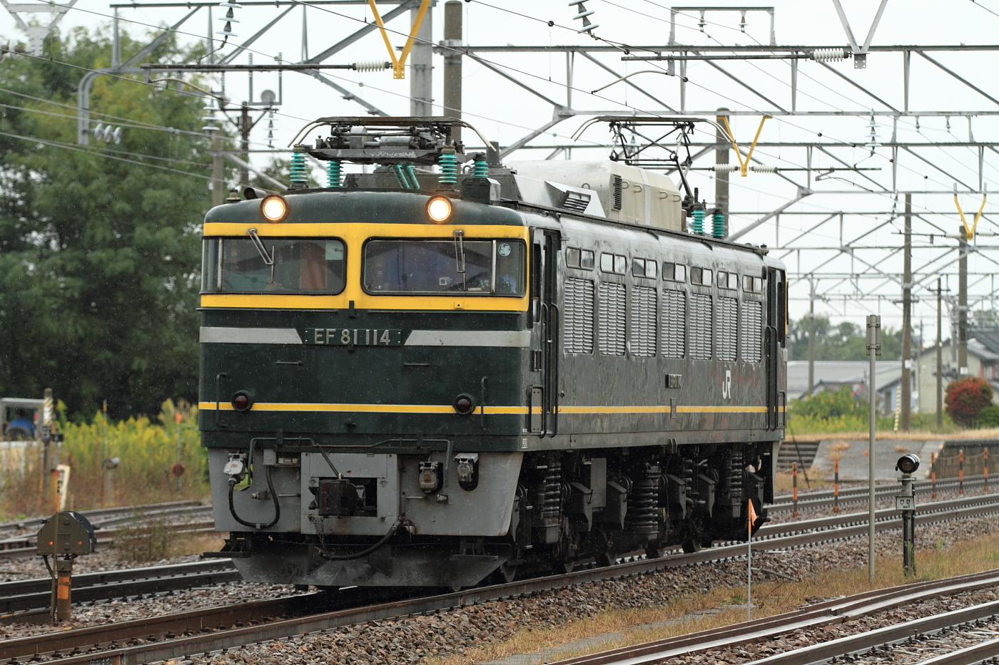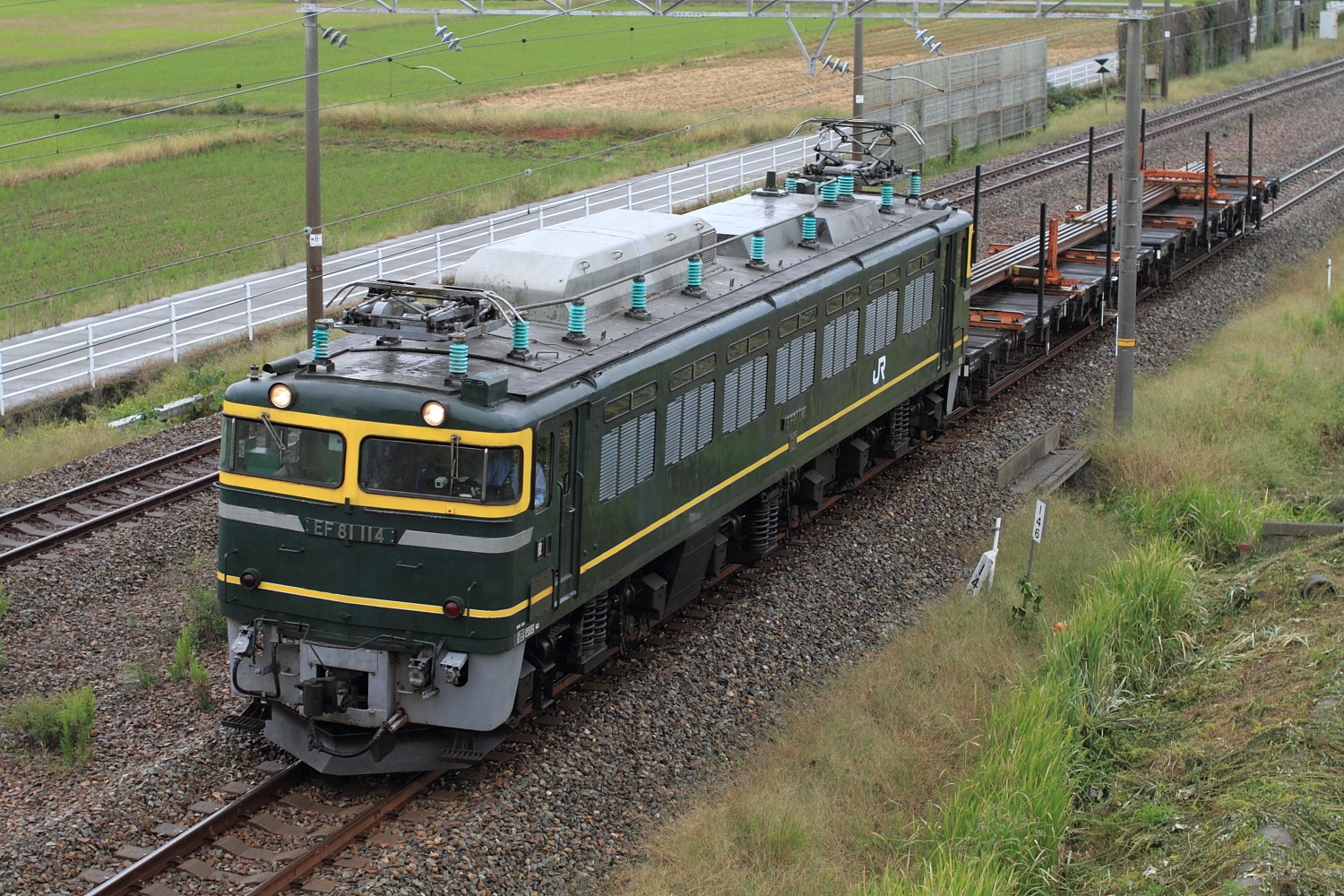 【北陸本線】工9211レ (EF81 114号機牽引)チキ2B撮影【EF81】 H29.10.6敦賀から単機で発車し、芦原温泉でチキ2両連結、粟津で2両切り離して単機は美川で折り返すという変則的な工臨を撮影。 工9211@加賀温泉〜動橋EF81 114号機牽引でした。あいにくの小雨の中、さらにダイヤ乱れで遅れて通過。粟津から定時になり、美川で折り返して単機で敦賀へ。 単9222@粟津定期運用のなくなった敦賀EF81ですが、まだまだ活躍します。 [0回]