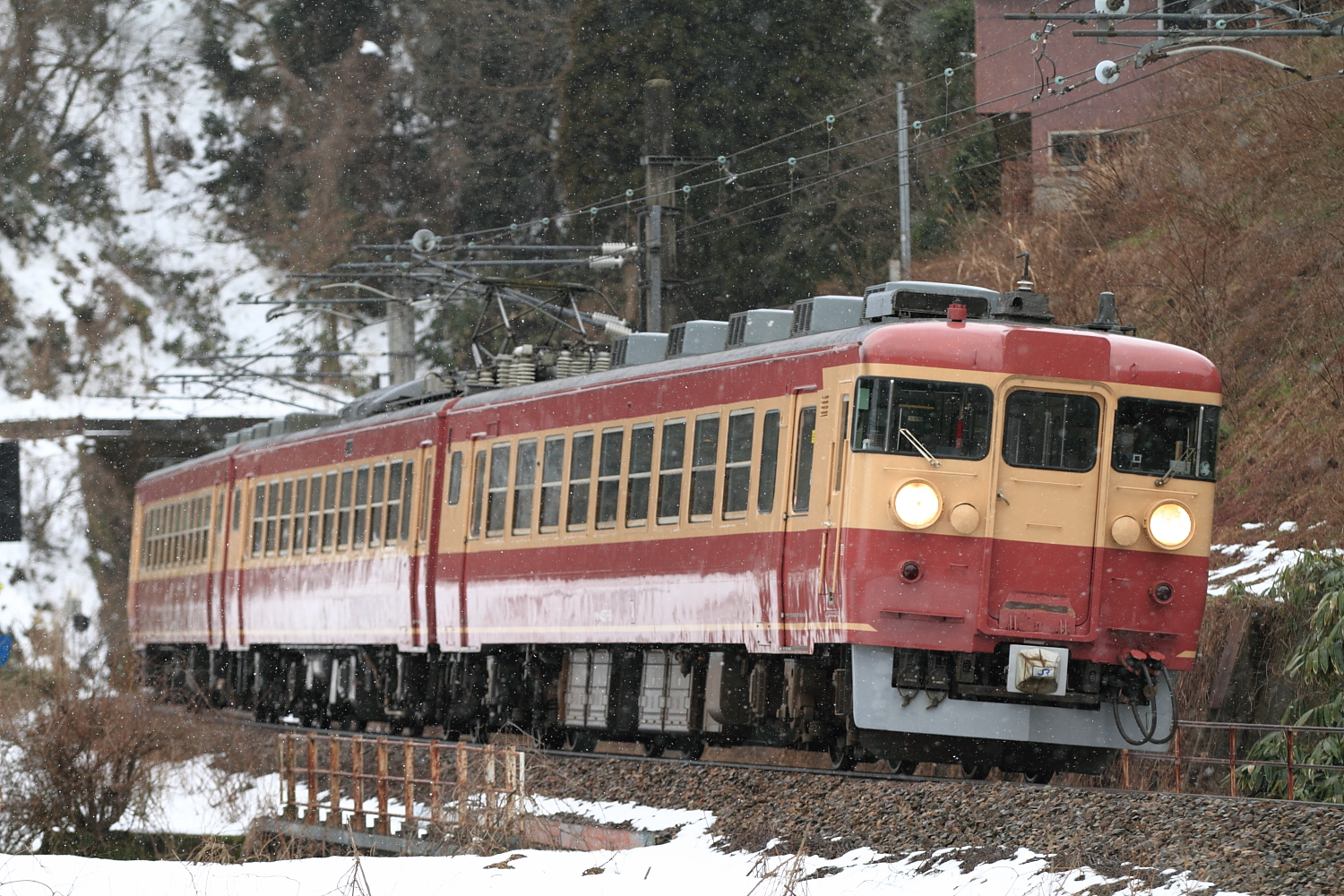 【北陸本線】国鉄色撮影【457・485系】 H26.2.13北陸を走る、国鉄色をどんどん記録します。 A13ヘセ A13ヘセ 1055M(北越5号)T18ヘセ小雪舞い散る、イマイチな天気でした。 [0回]