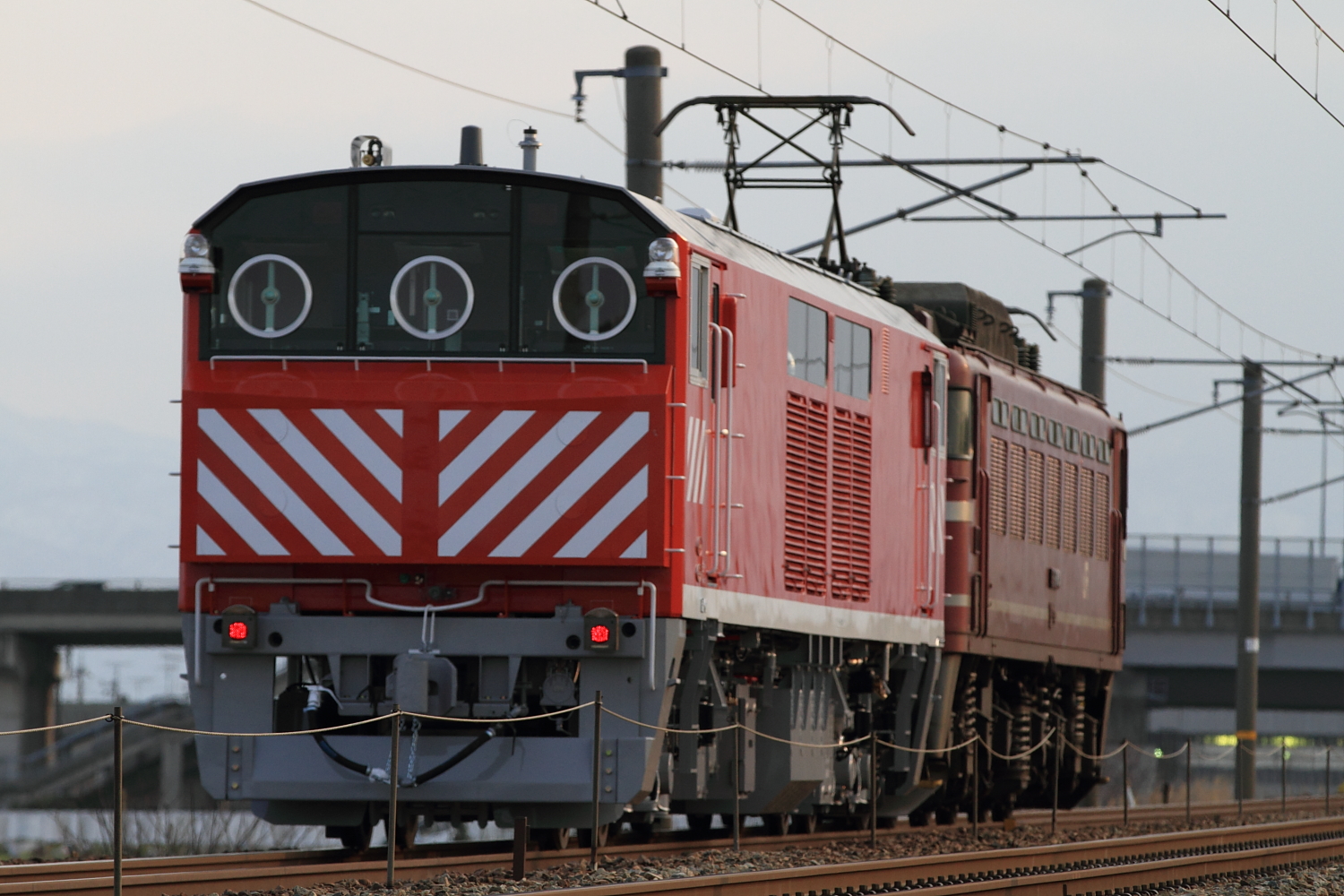 【北陸本線】キヤ143甲種回送【キヤ143】 H26.2.20先日発表された、JR西日本キヤ143が甲種回送されました。 9560レ牽引は全区間、富山のEF81 404号機でした。 ラッセルヘッドは無しで、キヤ143のみの回送でした。 今後の動きが気になります。DD15、DD16、DE15はどうなってしまうのか…。 [0回]