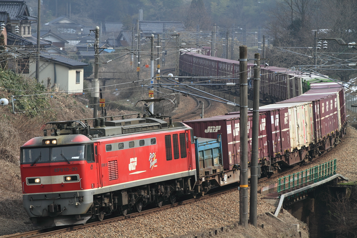 【北陸本線】475系A19とEF510 502【EF510】 H26.2.25朝、青いEF510ムドを見る鉄から始まり、空振りやミスだらけの1日でした。いろいろあって、下りA19をピン甘。貨物も… 475系A19編成もだいぶボロボロに見えてきました。最近塗りなおしたA13とは違って、「長年走っている感」が漂ってきました。 4076レEF510 20+コキ 1083レEF510 502+コキついに北陸を走る、青EF510を撮影。長さを見誤って、残念な記録となりましたが…これからどんどん運用がどんどん増えることでしょう。EF81の貨物をもっと記録せねば! [0回]