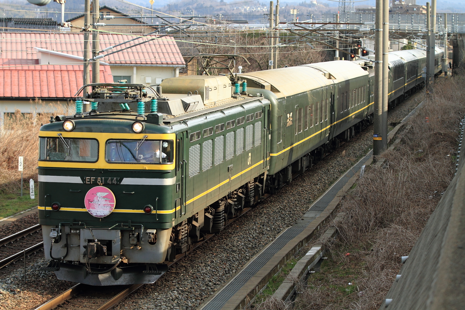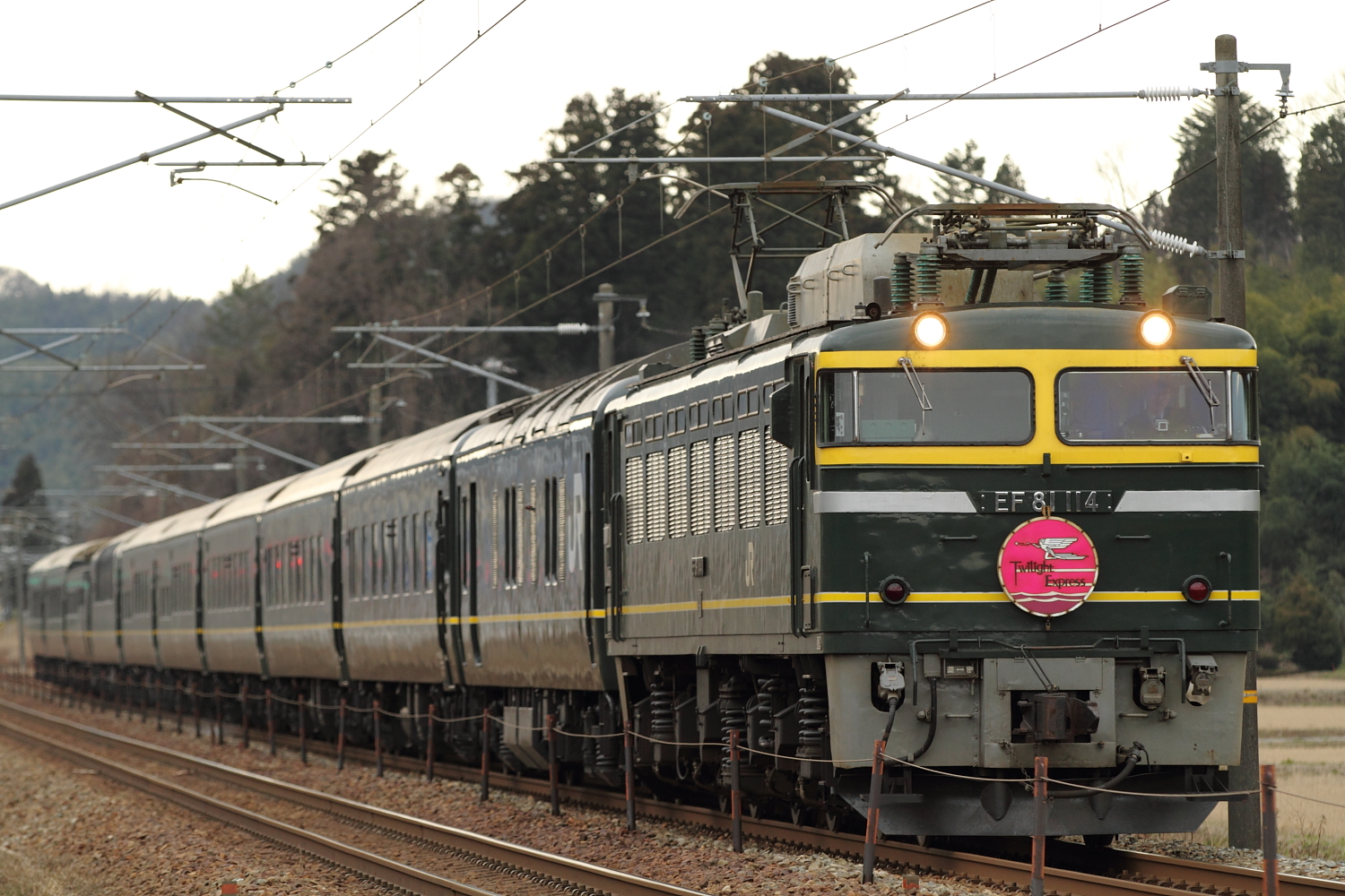【北陸本線】国鉄色A13編成撮影2・トワイライトエクスプレス【457・475系】 H26.3.3ダイヤ改正直前ともなると、できる限り撮影したくなります。 国鉄色のA13ヘセは青475系を連結し、6連でのカット。 521系6連は初めて撮影しましたが、津幡折り返しで回送です。 8002レトワイライトエクスプレス号はEF81 44号機の牽引でした。着雪したヘッドマークが冬を感じさせますが、今年の北陸は少なかったですね。 白6連を撮影し、この場は撤収。 貨物列車は遅れていた?ようで、この青3連を撮影し、475系の乗り鉄をして富山まで乗車しました。 8001レ夕方もトワイライトエクスプレス号を撮影、牽引機はEF81 114号機でした。北陸ならではの、よくない天気での撮影でした、、 [0回]