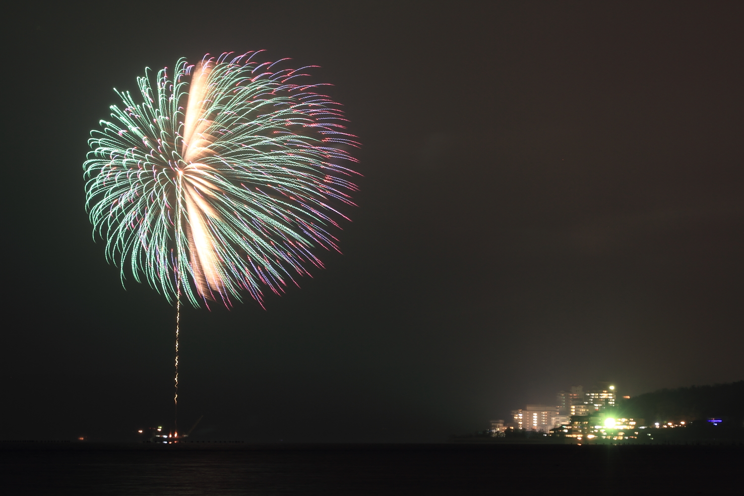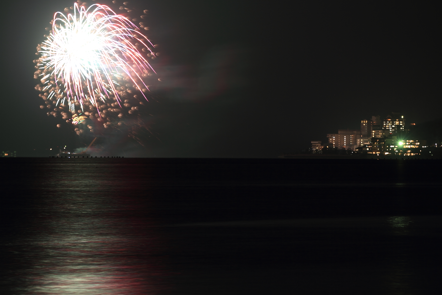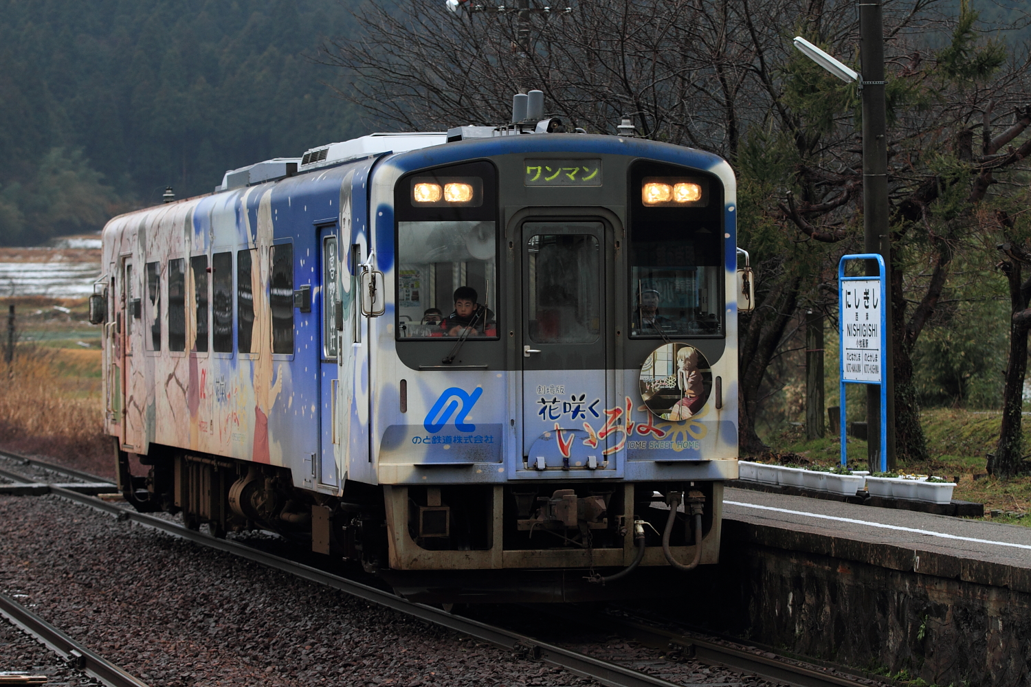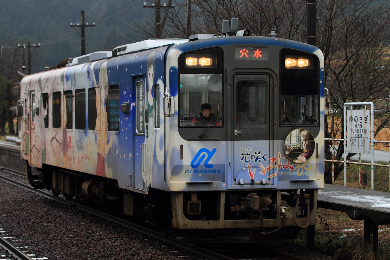 【のと鉄道】花咲くいろはラッピング列車19・和倉温泉花火【NT202】 H26.10.12のと鉄道穴水駅のあつあつ亭で、焼き牡蠣を美味しくいただいた帰りに西岸駅に寄りました。駅名看板「にしぎし」駅名看板「ゆのさぎ」NT202@西岸能登島、ひょっこり温泉でほっこりして、和倉温泉駅前で「はいだるいカレー」食べて、20時からは花火! 途中、みぞれや強風と悪天候で寒かったケド、なんとか撮影できました^^ [0回]