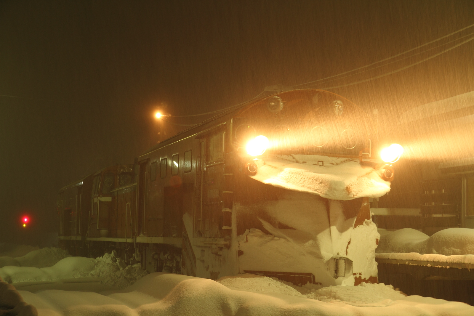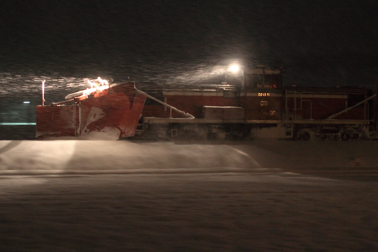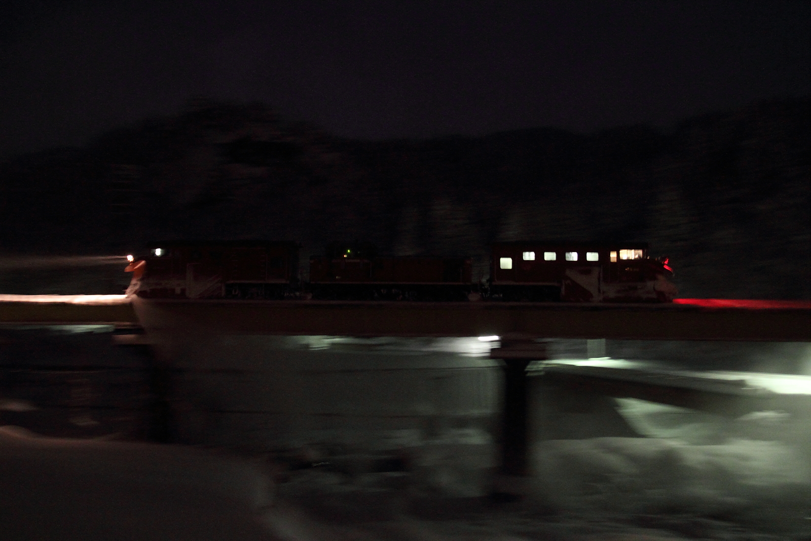 【城端線】雪443レ・雪444レ撮影【DD15ラッセル】 H26.2.5城端線にてDD15 11ラッセルによる、雪443レ・雪444レが運転されました。今冬、3回目のラッセル撮影は城端線です。 雪443レ 今冬の18きっぷの宣伝にも出ている、城端駅で折り返し。キハ40、キハ47が停車中の奥にDD15が到着。 雪444レ雪444レは上のライトも点灯。 初の城端線ラッセル撮影でした。撮影地がわからずでしたが、城端線は道路と並走しているので明かりもあり撮影しやすいですね。 [0回]PR