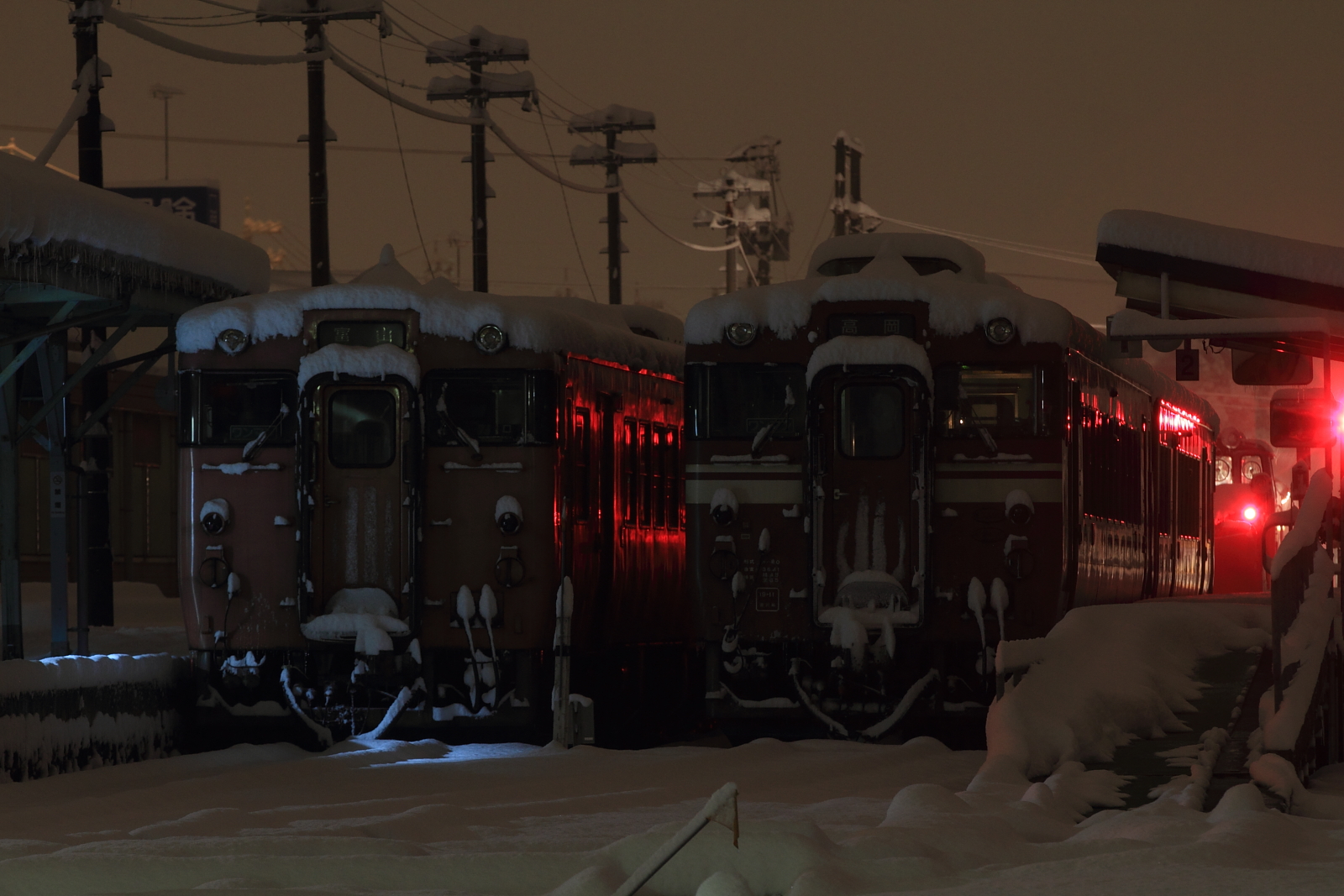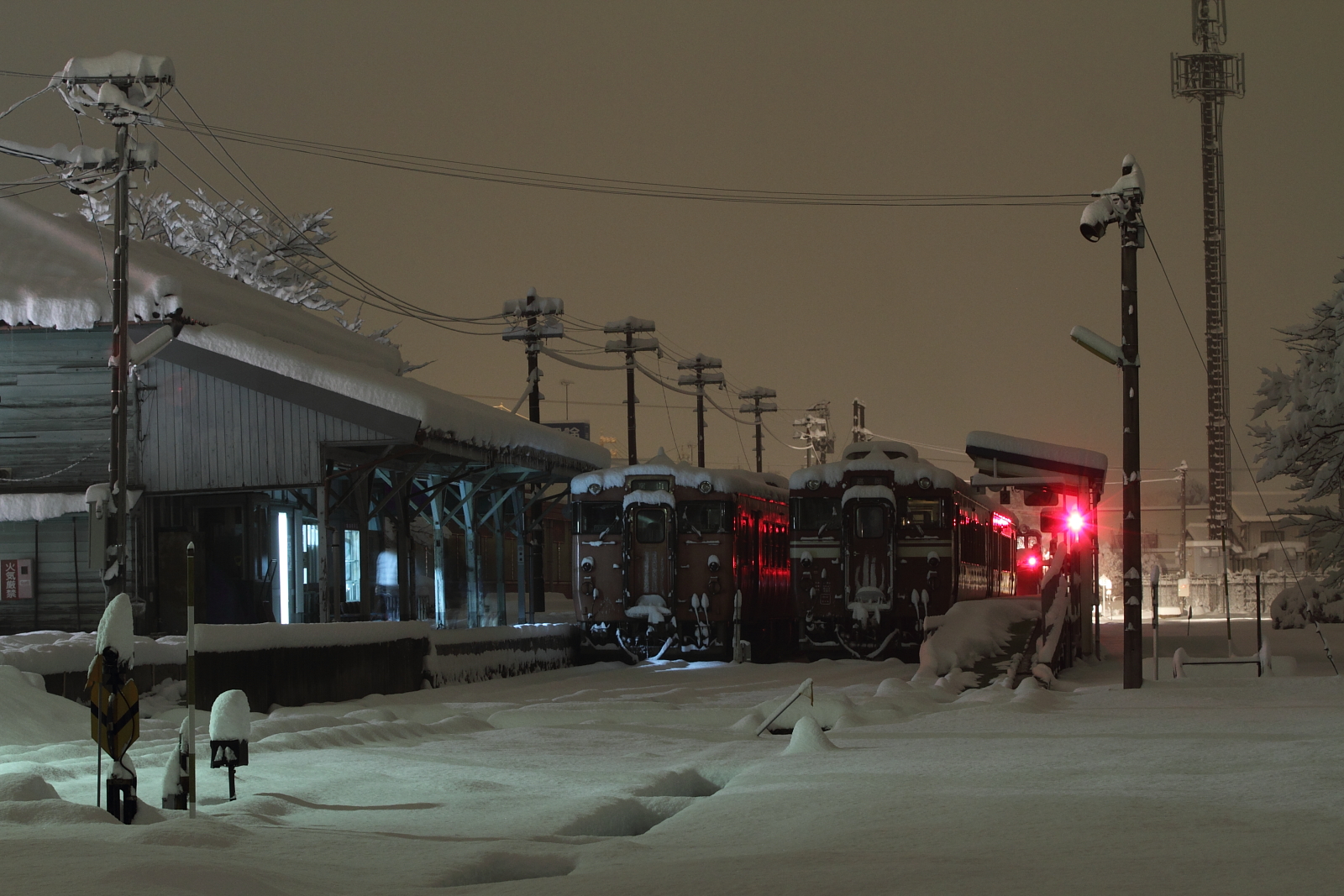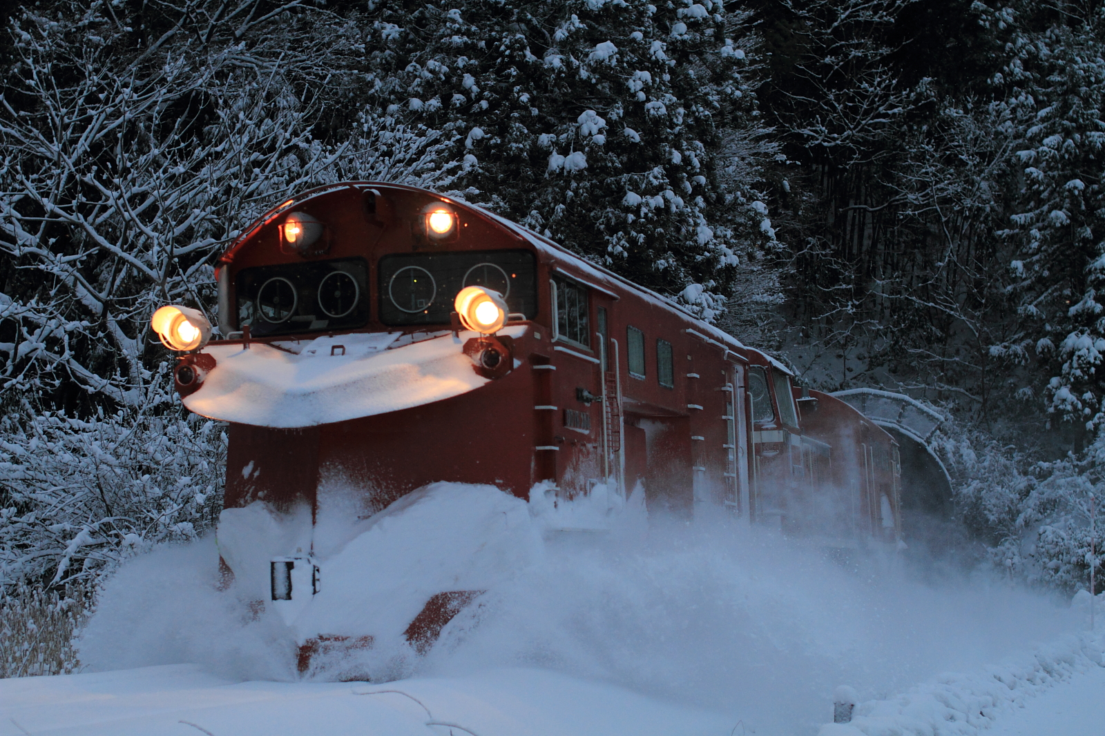 【城端線】雪443レ・雪444レ撮影【DD15ラッセル】 H26.2.5城端線にてDD15 11ラッセルによる、雪443レ・雪444レが運転されました。今冬、3回目のラッセル撮影は城端線です。 雪443レ 今冬の18きっぷの宣伝にも出ている、城端駅で折り返し。キハ40、キハ47が停車中の奥にDD15が到着。 雪444レ雪444レは上のライトも点灯。 初の城端線ラッセル撮影でした。撮影地がわからずでしたが、城端線は道路と並走しているので明かりもあり撮影しやすいですね。 [0回]PR