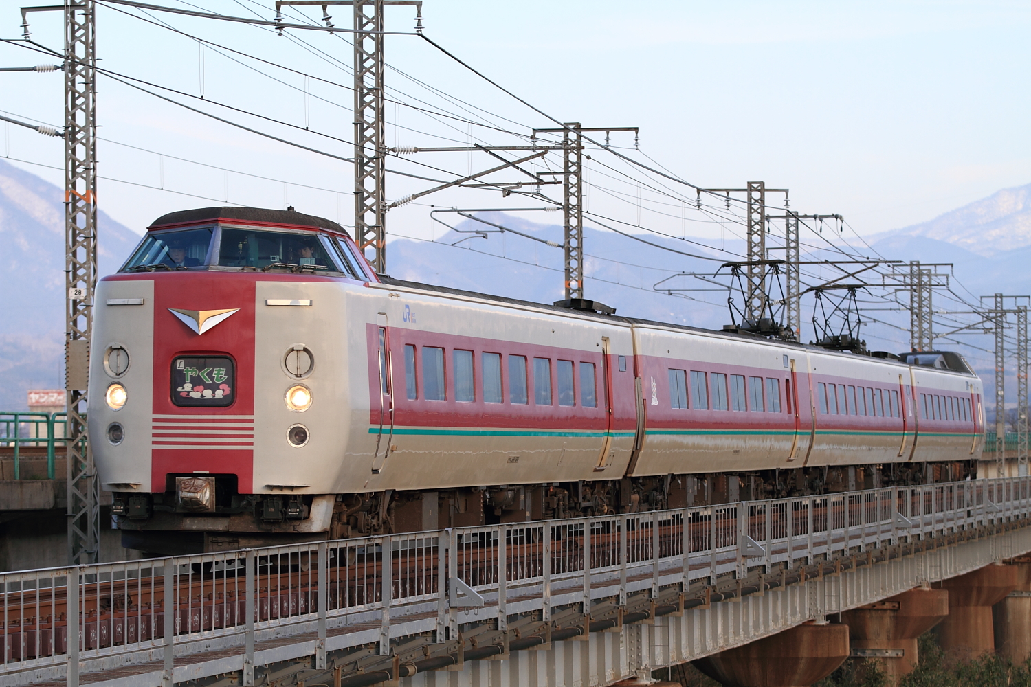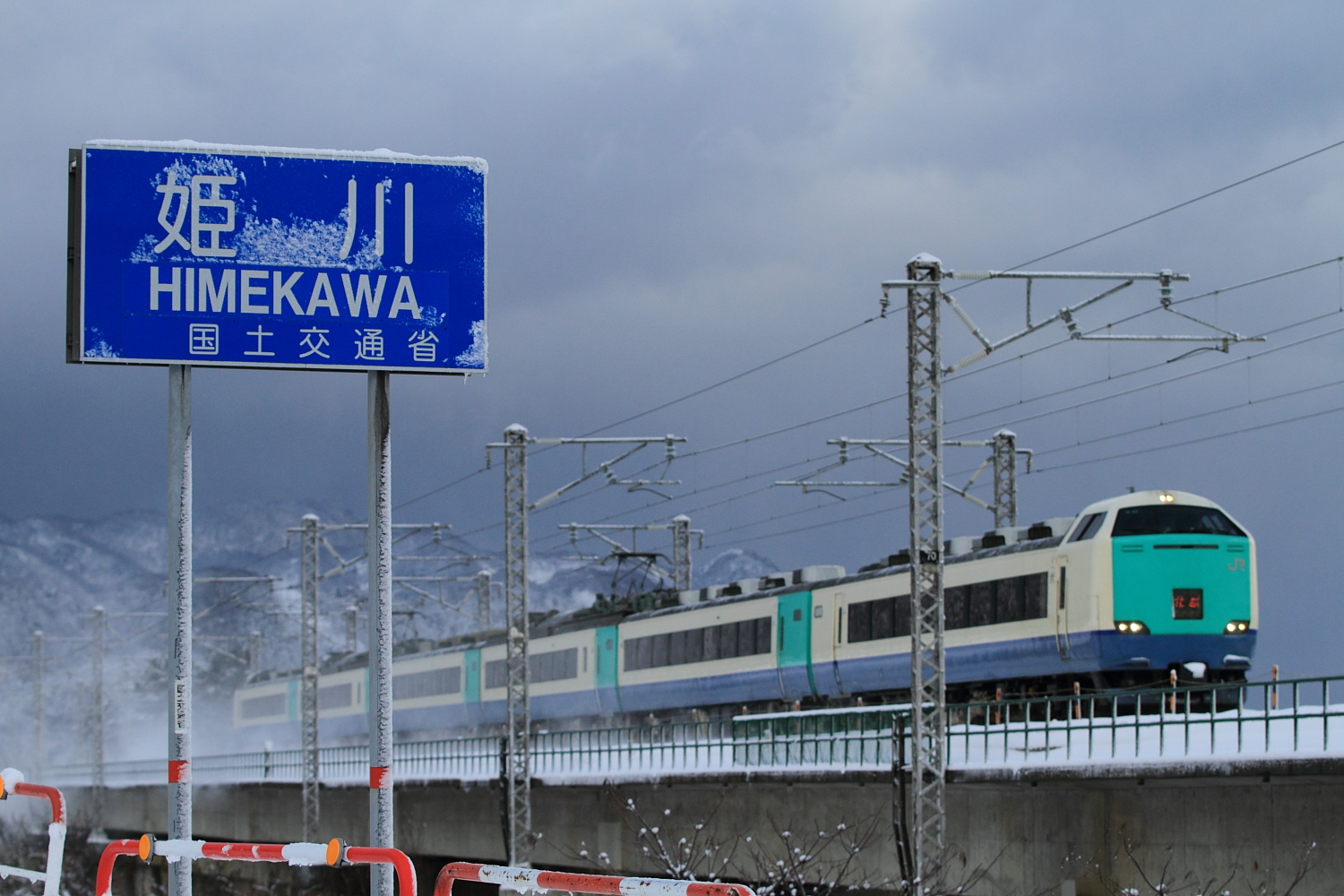 【北陸本線】A13編成撮影【485・475系】 H26.1.19ラッセル撮影の後、信越線でも撮影行こうかと思ってましたが大糸線で良い記録ができて満足できたので帰宅…の前に少し撮影しました。 1001M@青海~糸魚川姫川を渡る、681系SRE。 1051MコチラはR編成でしたが485系。この光景も、来年までになってしまうのでしょうか… A13編成雨飾山が少しだけ見えていたのですが、急に曇り、雪ケムリでただの編成写真となってしまいました。銭形でのとんかつ、様々な温泉にローカル駅。大糸線でののんびりライフ、最高です。 [0回]
