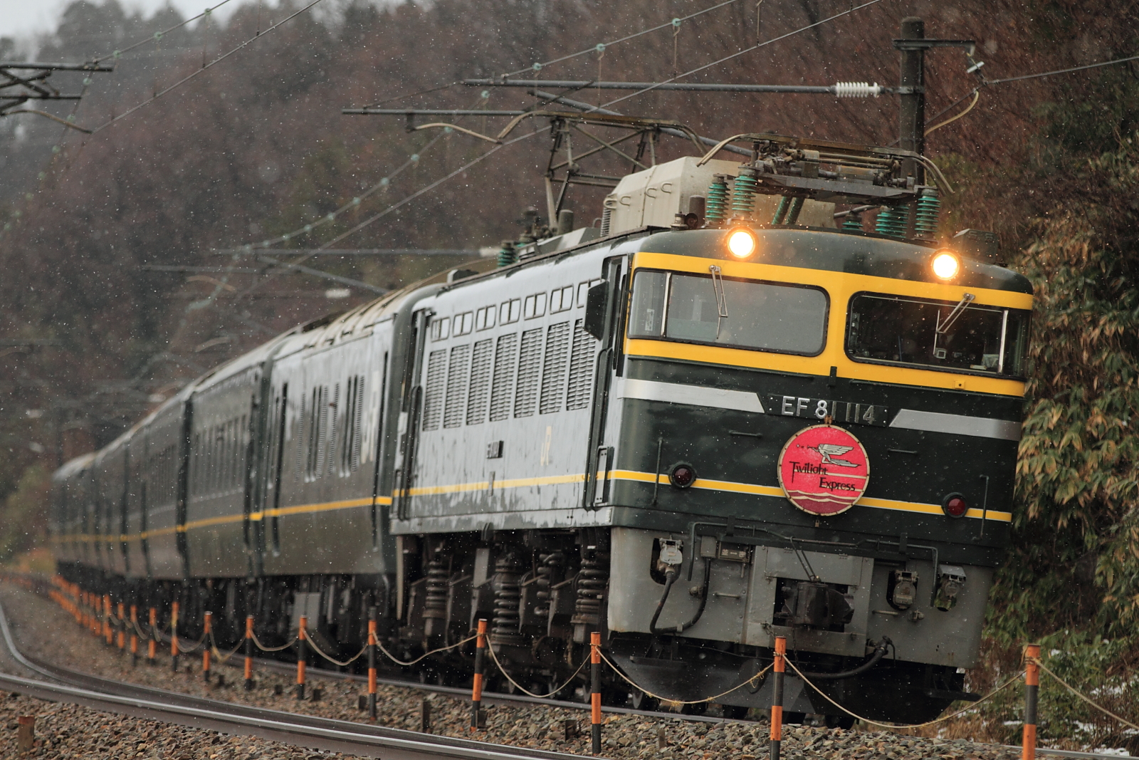 【北陸本線】8001レトワイライトエクスプレス撮影【24系】 H26.1.22小雪舞う中夕方、倶利伽羅付近で撮影です。 475系3連での運用はまもなく激減してしまうので、お早目の記録を… 8001レEF81 114号機の牽引で、トワイライトエクスプレスは走り去って行きました。毎年、もっと撮らなきゃ…と思いつつあまり記録がないので、今年こそはたくさん撮ろう。 1056M485系T12ヘセの「北越号」北越の485系もどうなるのでしょうか?主流はR編成に?Tヘセ、Kヘセなどなど気になります。 最後に久々の縦アン。縦での撮影は苦手、というか、好きではありませんです。。。。。 [0回]