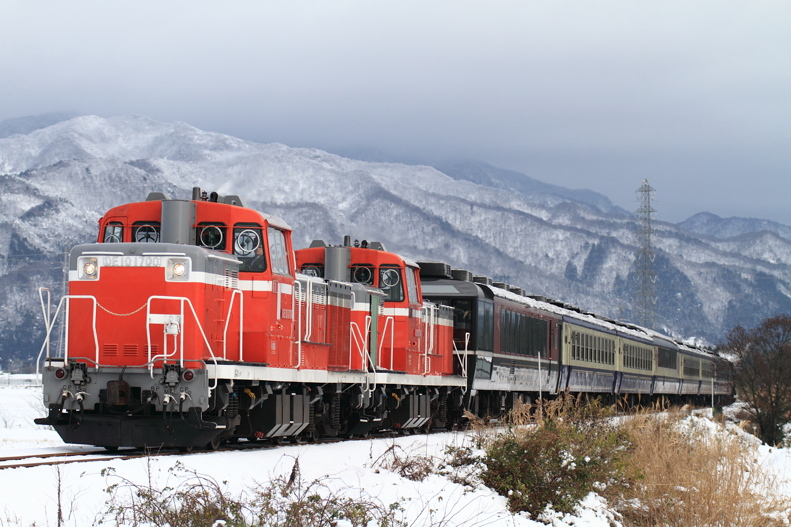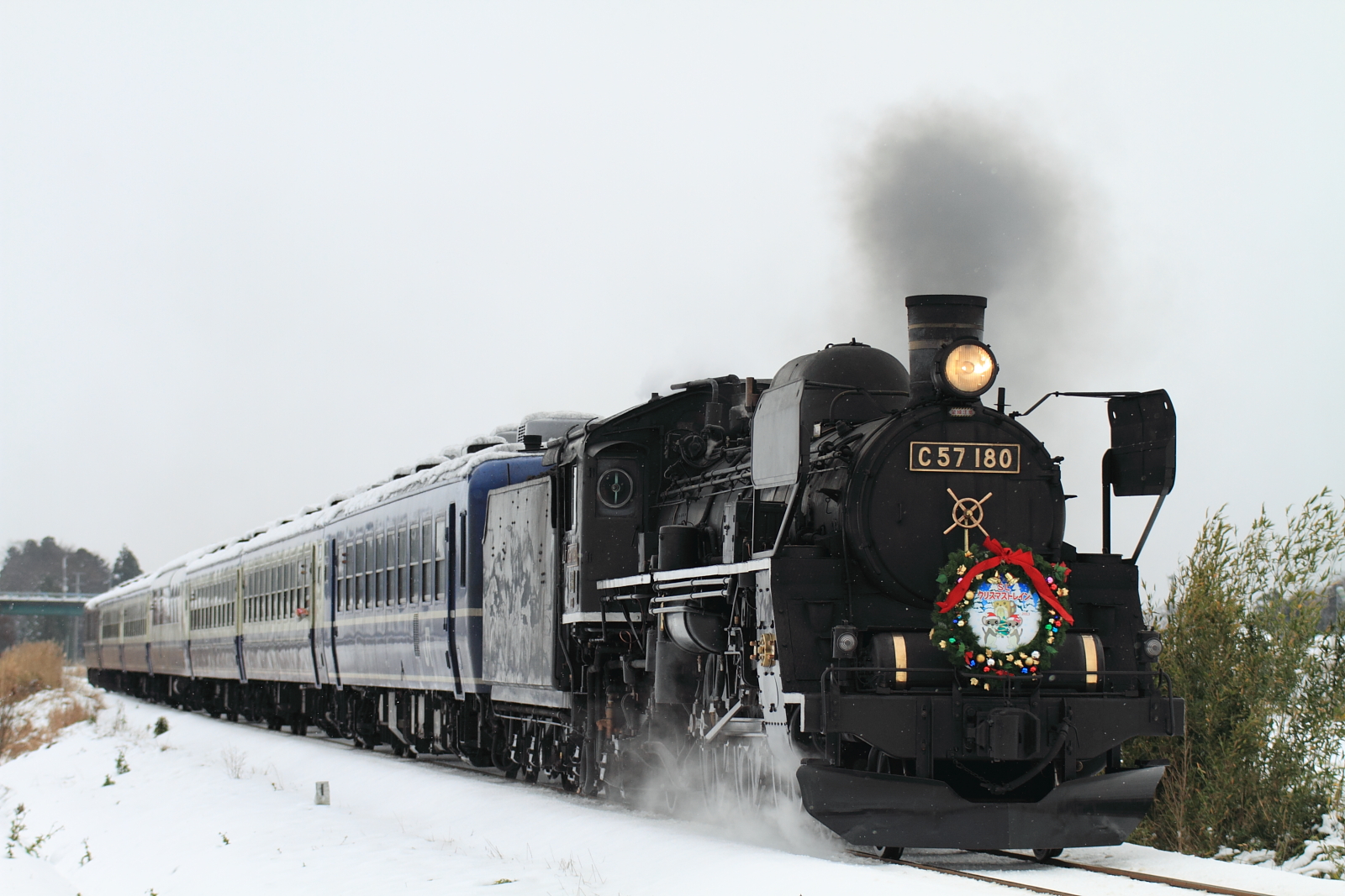 【磐越西線】SLクリスマストレイン号撮影【C57-180】 H25.12.15磐越西線でSL撮影。14日にトラブルなどあり、15日は新潟~津川での運転となりました。 @猿和田~馬下復路は津川~新津で臨時快速として運転。 @猿和田~馬下14日の救援同様、DE10重連が先頭となっての珍しい形での運転となりました。おかげで、遅れトワイライトやE3系甲種は……泣 [0回]