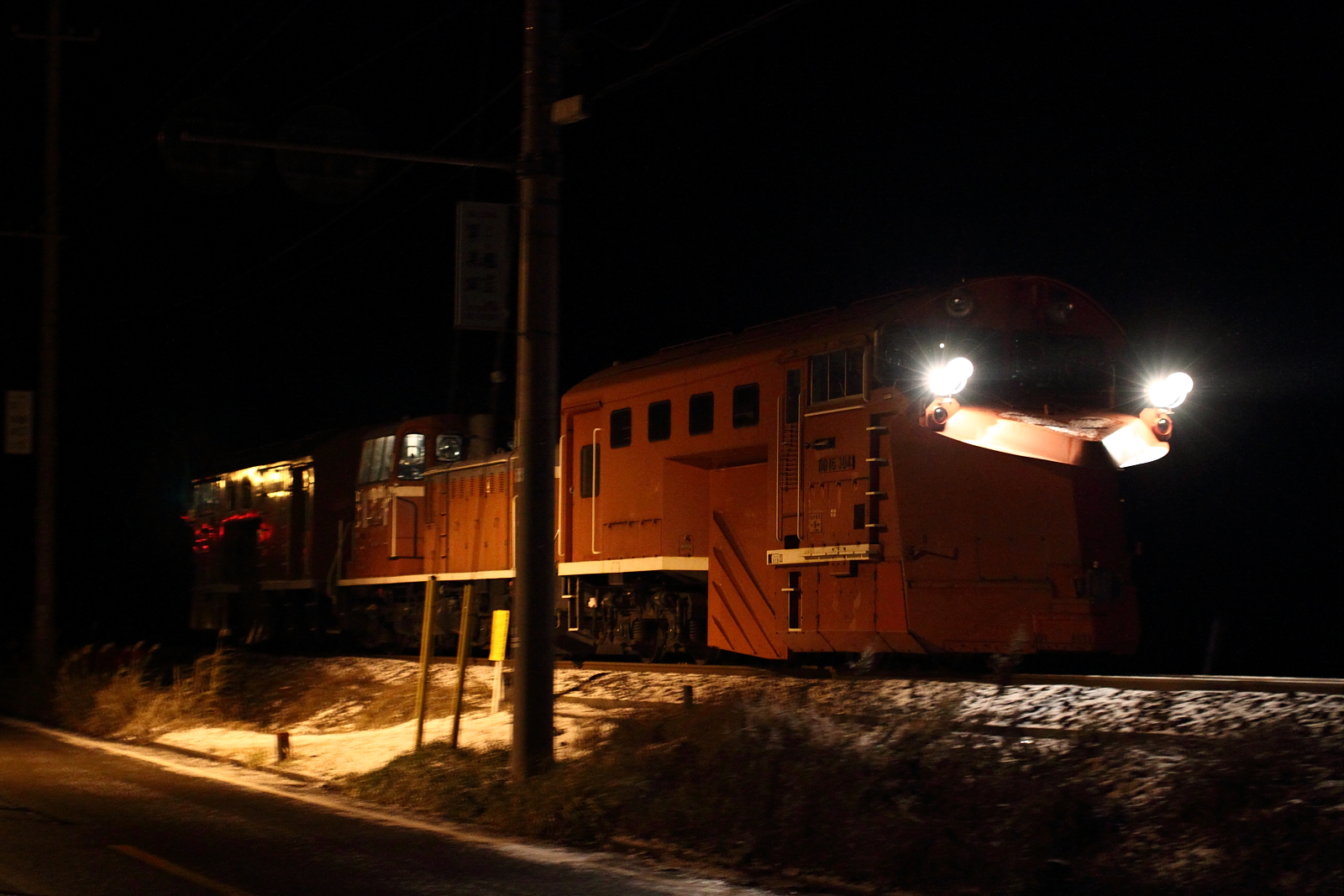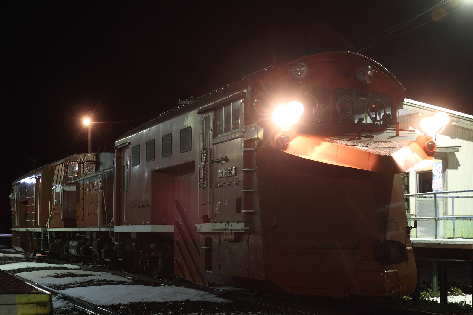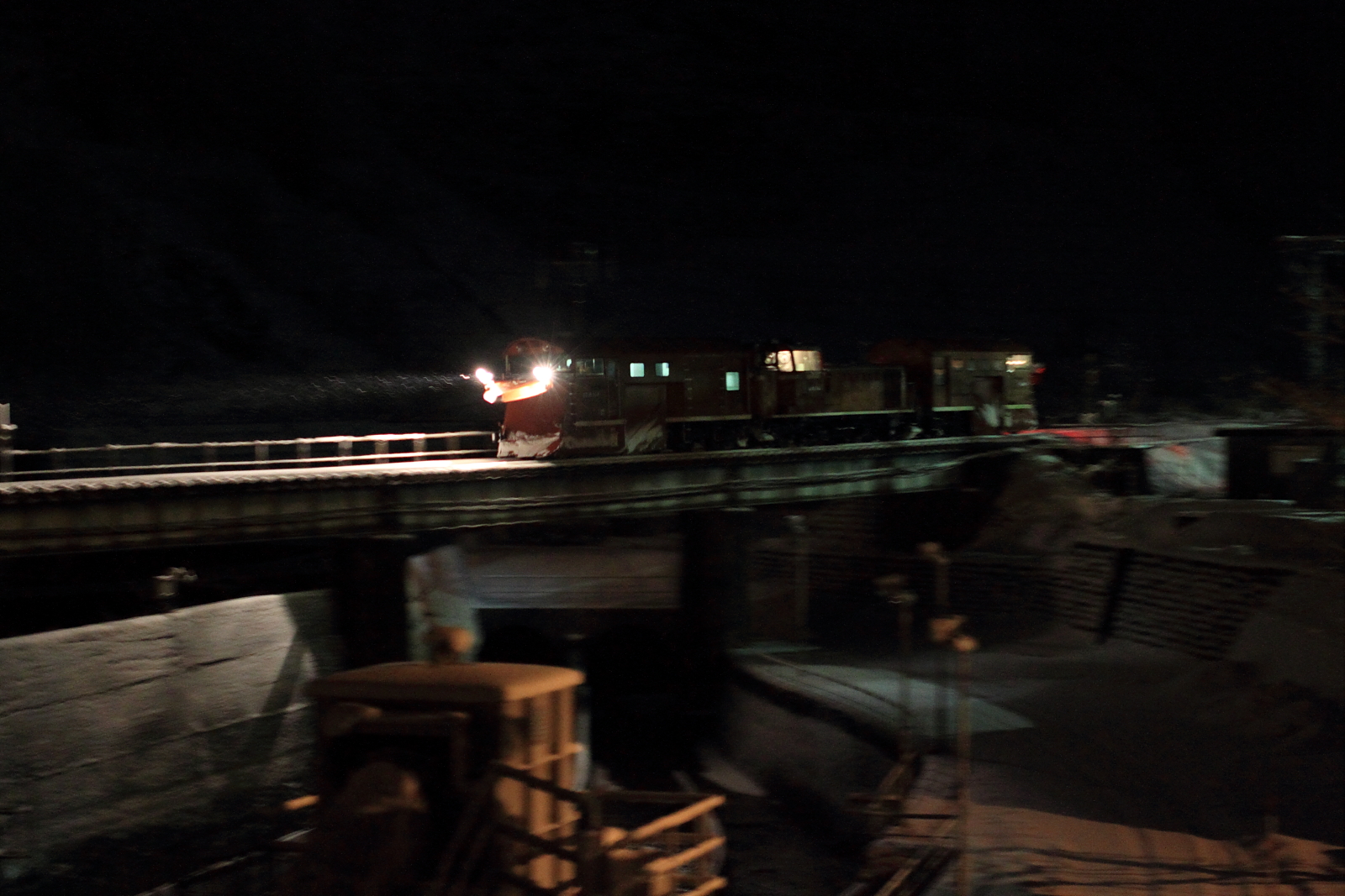 【大糸線】雪460レ・雪463レ撮影【DD16ラッセル】 H25.12.28今年もラッセルの季節になりました。2013~2014年、最初はやはり大糸線から!大糸線はお気に入りの、DD16 304単線ラッセル!!雪460レ 平地にはほとんど雪は無し。 根知駅で小休止。例年通り、ライトアップされた橋梁。 そしてコチラ、土砂崩れ現場? 長野県に入ると雪が積もって、どんどん降り続いていました。雪463レ 復路は雪が止みました。 と、思ったらライトアップ橋梁は大雪で見えず、さらに先で1/10流し撮り。 最後に踏切で赤く染まったDD16 304を。大糸線ラッセル、今冬も追い続けます! [0回]