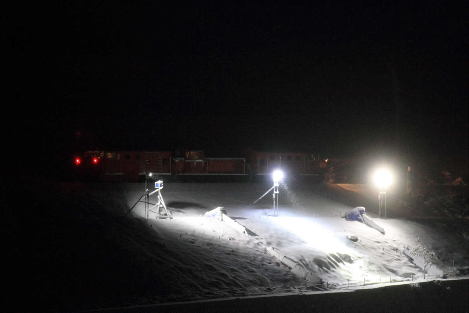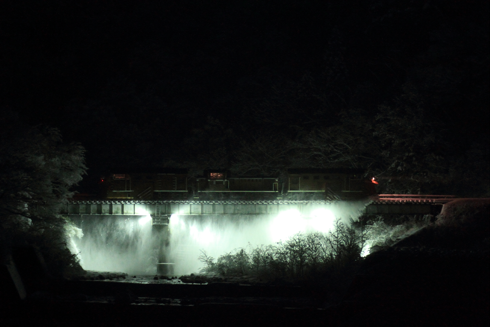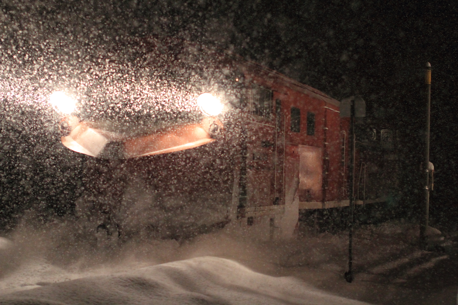 【大糸線】雪460レ・雪463レ撮影【DD16ラッセル】 H25.12.28今年もラッセルの季節になりました。2013~2014年、最初はやはり大糸線から!大糸線はお気に入りの、DD16 304単線ラッセル!!雪460レ 平地にはほとんど雪は無し。 根知駅で小休止。例年通り、ライトアップされた橋梁。 そしてコチラ、土砂崩れ現場? 長野県に入ると雪が積もって、どんどん降り続いていました。雪463レ 復路は雪が止みました。 と、思ったらライトアップ橋梁は大雪で見えず、さらに先で1/10流し撮り。 最後に踏切で赤く染まったDD16 304を。大糸線ラッセル、今冬も追い続けます! [0回]