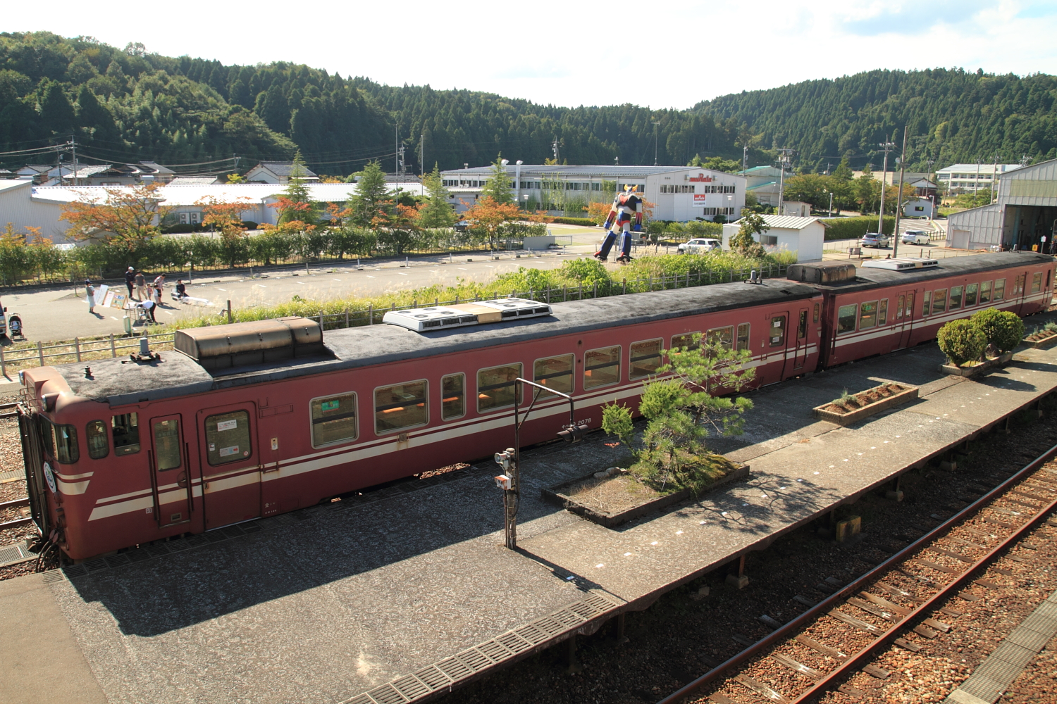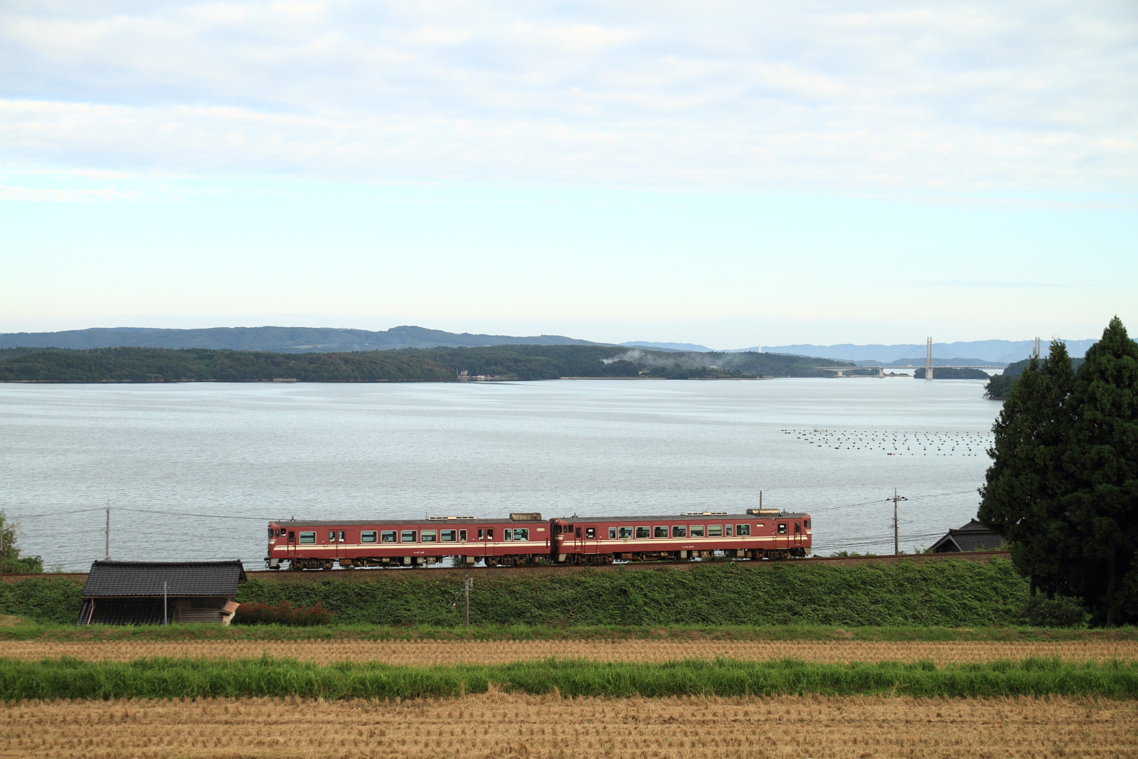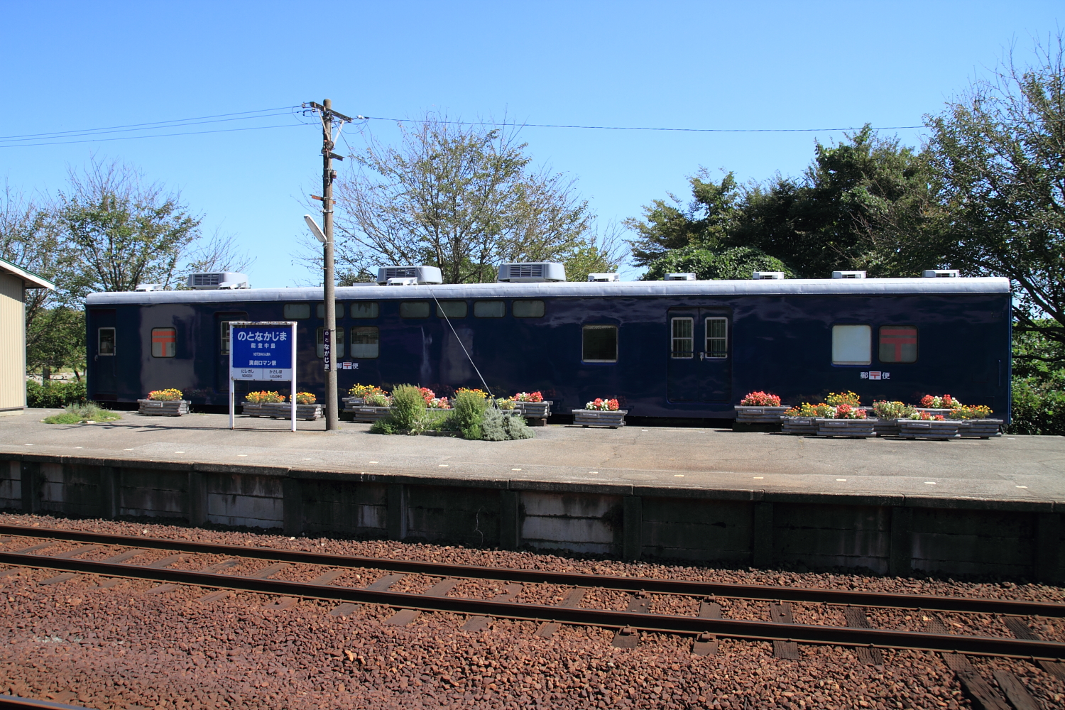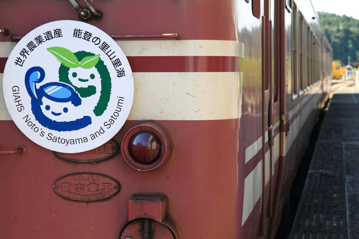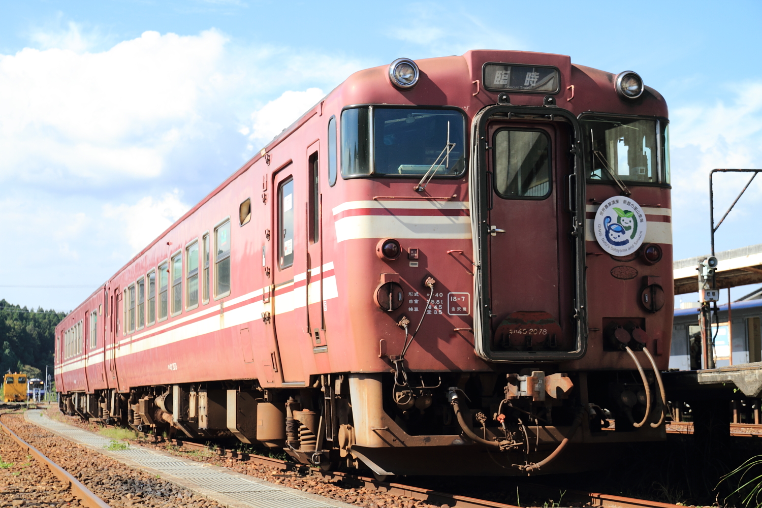 【七尾線】快速「能登の里山里海号」(キハ40・47)運転(2013年)【のと鉄道】 H25.9.29一昨年から始まり、3回目の快速「能登の里山里海号」直通運転が、金沢~穴水を運転しました。←金沢 キハ40 2078+キハ47 140今年はキハ40+47となり、キハ47 140は2011年に初めて運転された時にも入線しています。 ヘッドマークの位置も、運転台下へと変更されています。穴水では鉄道フェスタも開催され、にぎわっていました。 9854D 能登中島にはお色直しが終わったオユ10も展示されています。 [0回]