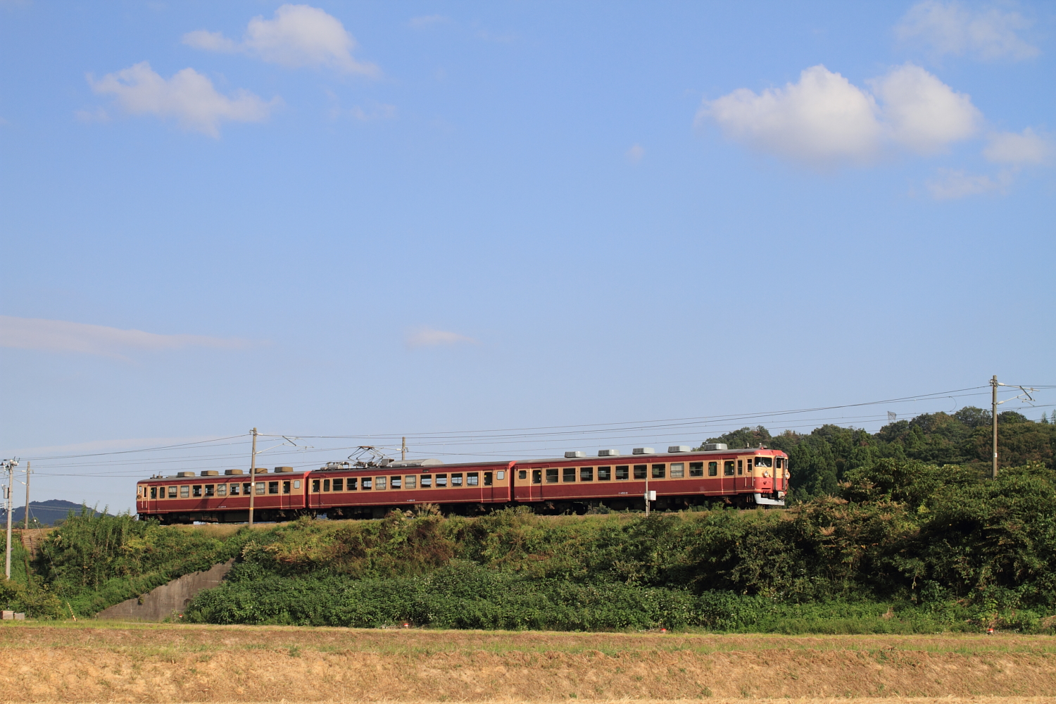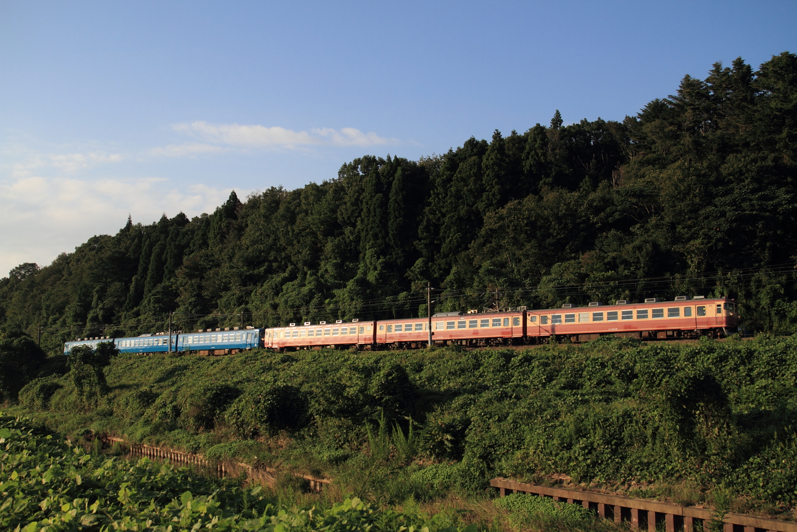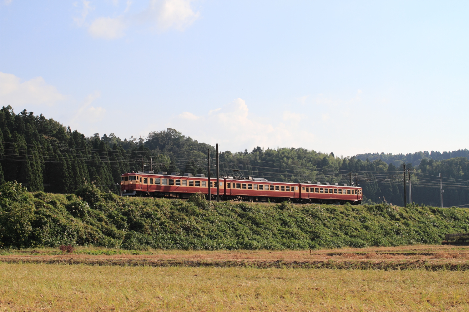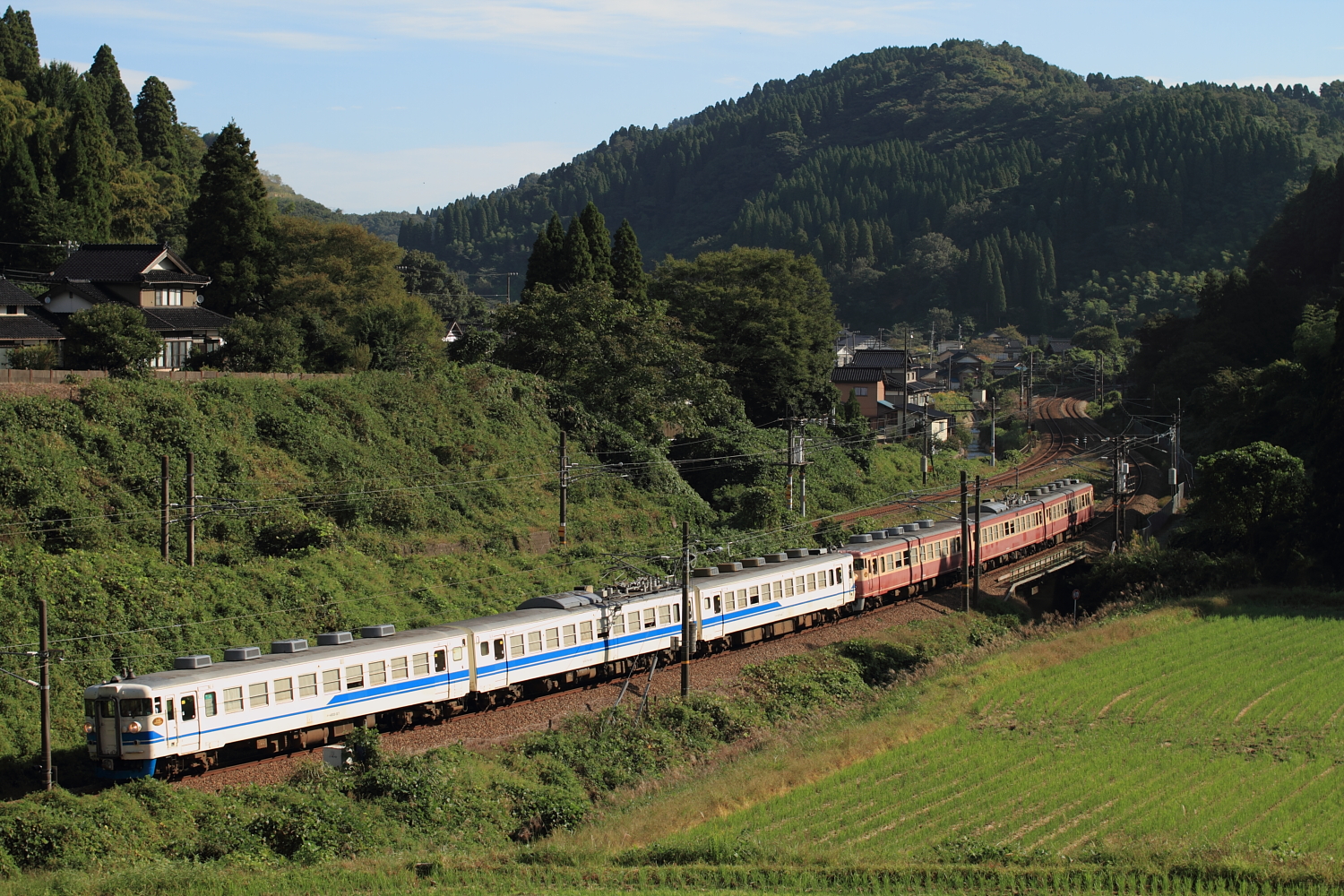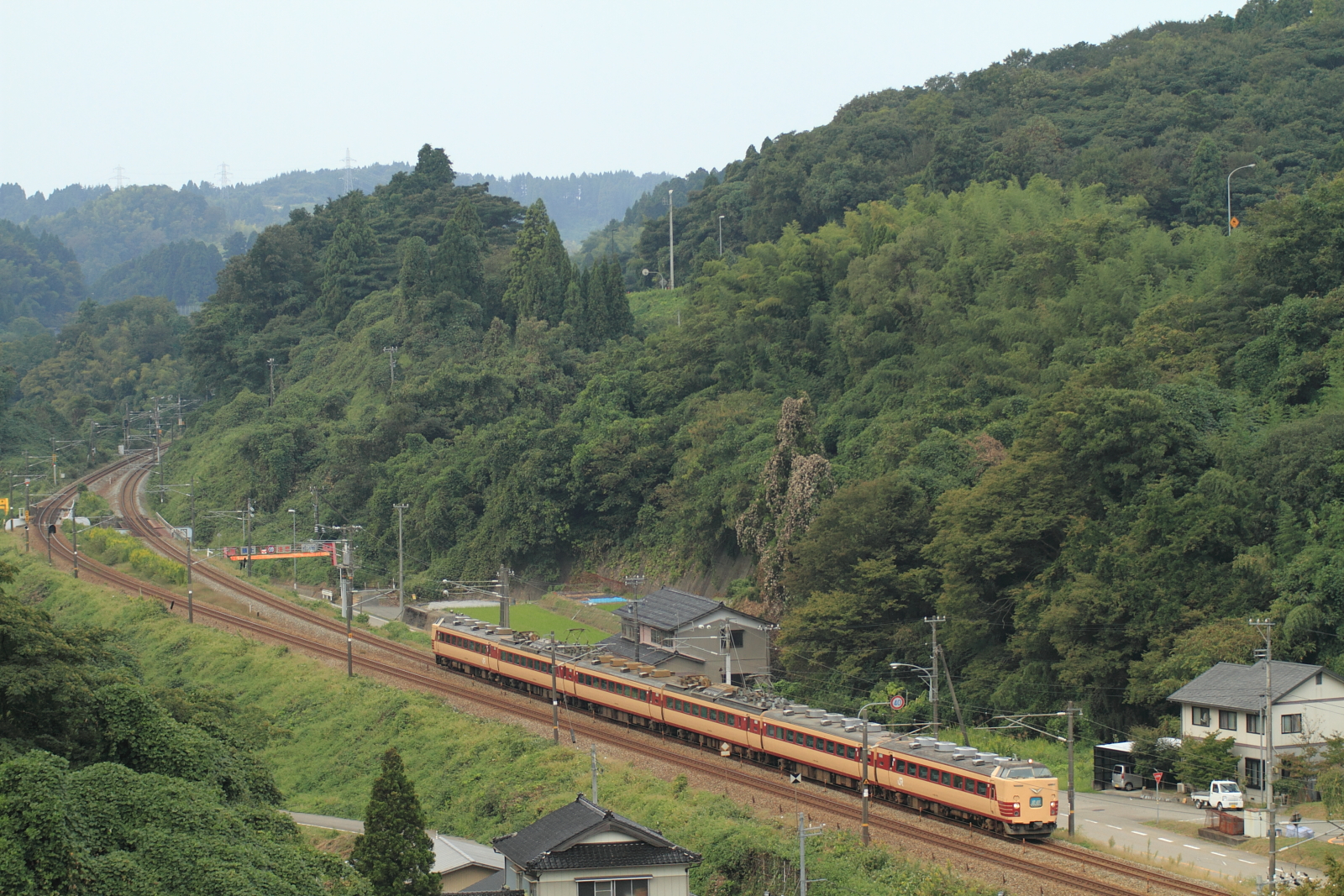 【北陸本線】国鉄色撮影その2【475系・485系】 H25.10.2連日の国鉄色撮影。 475系A13ヘセを。ホロが付いている方がお気に入りです。やはりデカ目+ホロが良いですね。続いて485系K1ヘセ。 イマイチな天気が残念です、、 コチラは485系K2ヘセ短時間に国鉄色がたくさん記録できました。天気の良い日には毎日にでも撮りたいですね。 [0回]
