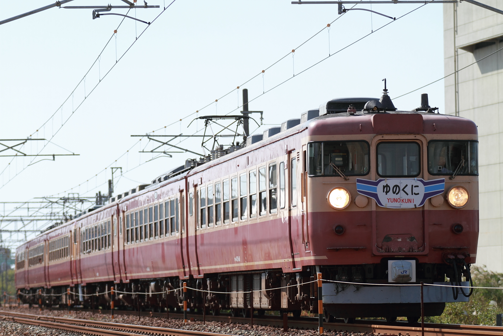 【北陸本線】「北陸本線100周年記念号運転(ゆのくに)【475系】 H25.10.13北陸本線敦賀~糸魚川間で2日間にわたって475系A13+A19編成(国鉄色)を使用した臨時列車が運転されました。初日の敦賀~金沢間は急行「ゆのくに」号として運転されました。※列番省略 @小舞子~美川 @美川~加賀笠間 [0回]
