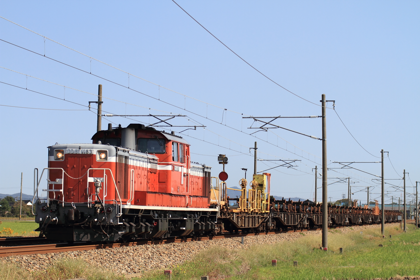 【北陸本線】工9588レ撮影【DD51 1183】 H25.10.14おなじみ、ロンチキ。今回は津幡~倶利伽羅~石動で荷卸しをしたり珍しい運用のあと、いつもの工9588レで糸魚川から返却。臨時の475系団体の前に運転。 工9588レ@石動~福岡DD51 1183の牽引での運転でした。 [0回]PR
