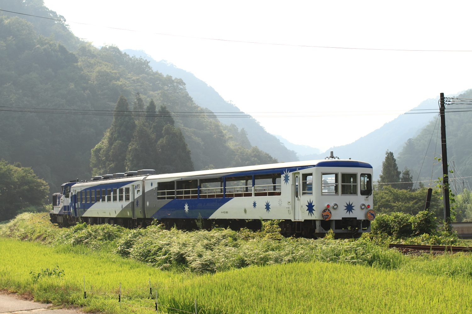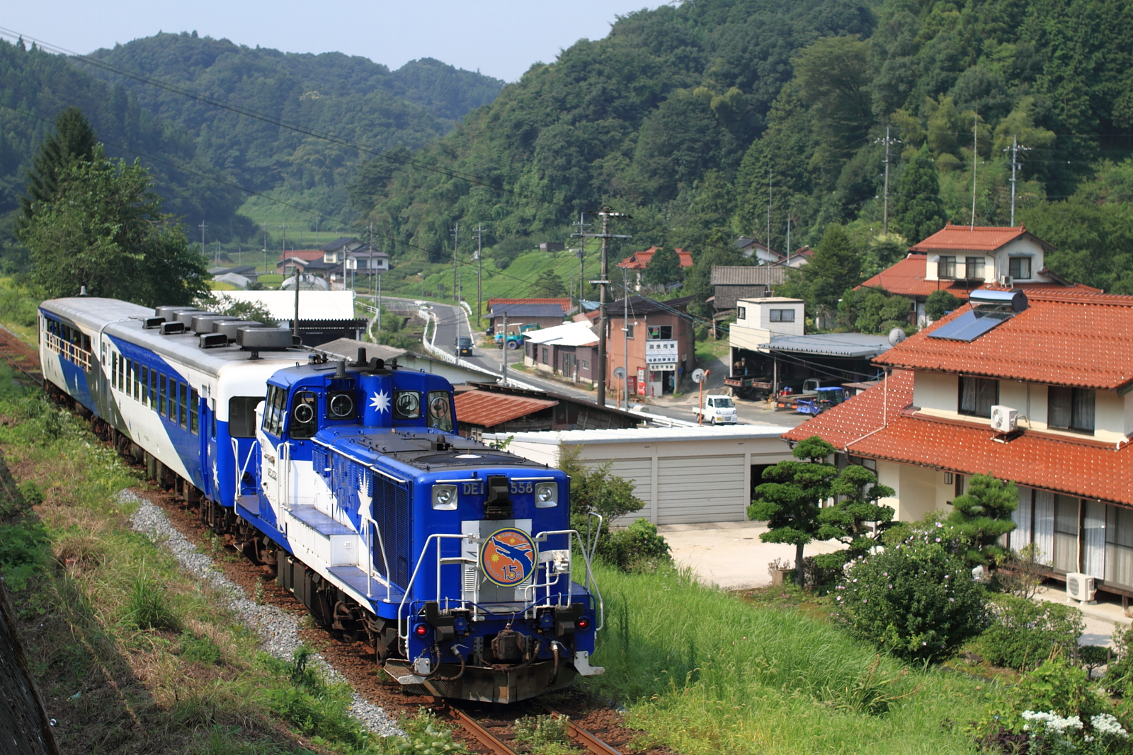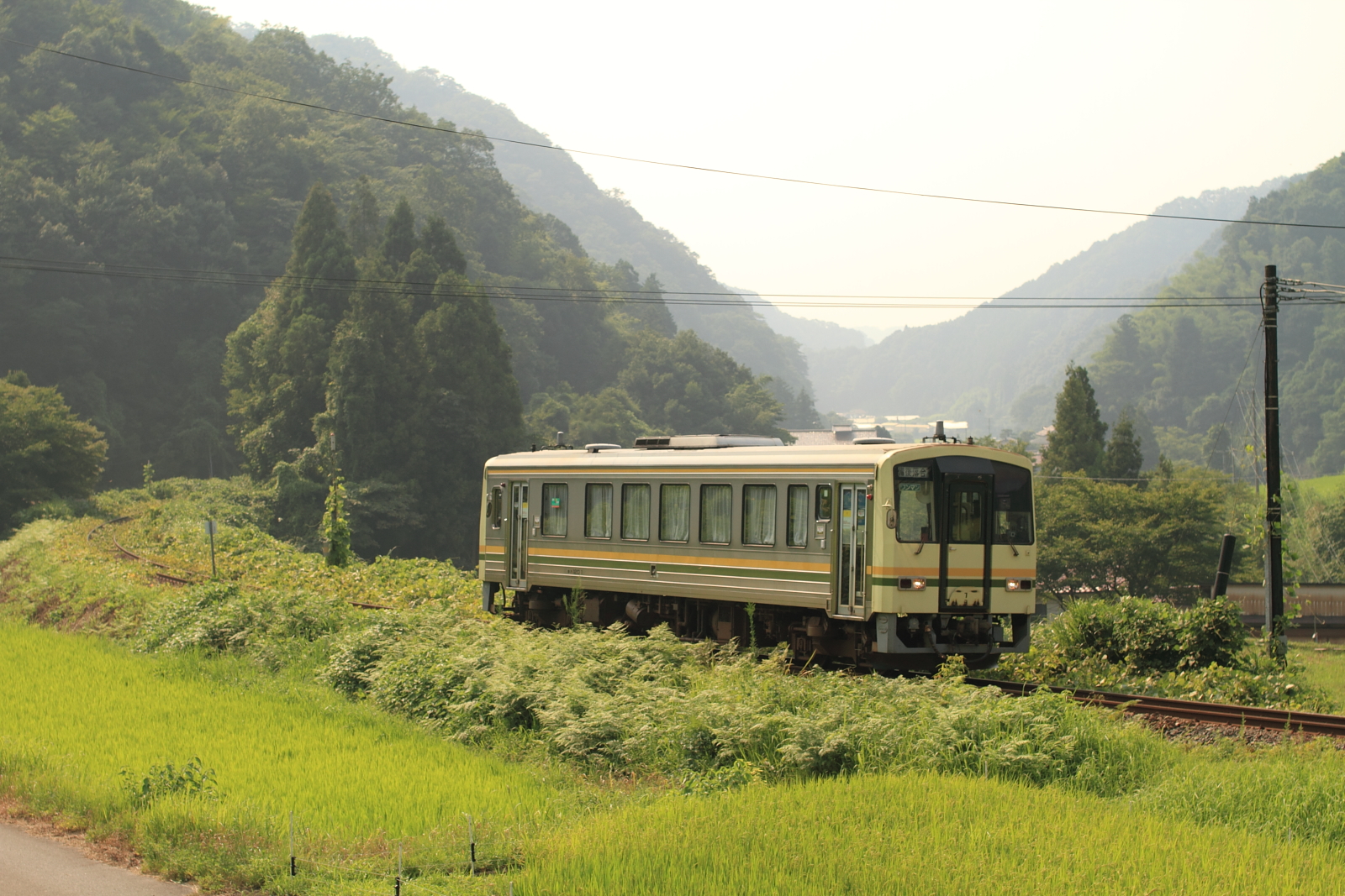 【木次線】奥出雲おろち号撮影【DE15】 H25.8.11出雲と言えば、木次線の奥出雲おろち号!延長運転なので木次より北で撮影。 15周年のヘッドマークとなっていました。数年前に乗車しましたが、とても良い列車です。 奥出雲おろち号の復路は木次止まりで、時間ギリギリに間に合った!と、思ったらレール温度高温で運転見合わせ…。先に普通列車が通過。木次線はキハ120での運転です。やってきたのはトップナンバーのキハ120 1でした。 約1時間遅れで、のんびりと通過していきました。1日かけて、木次線を撮影したいなぁ。 [0回]