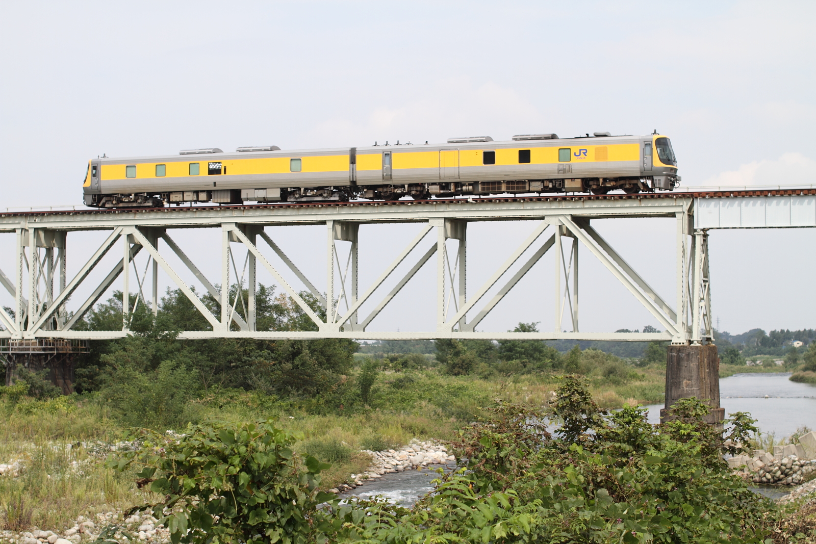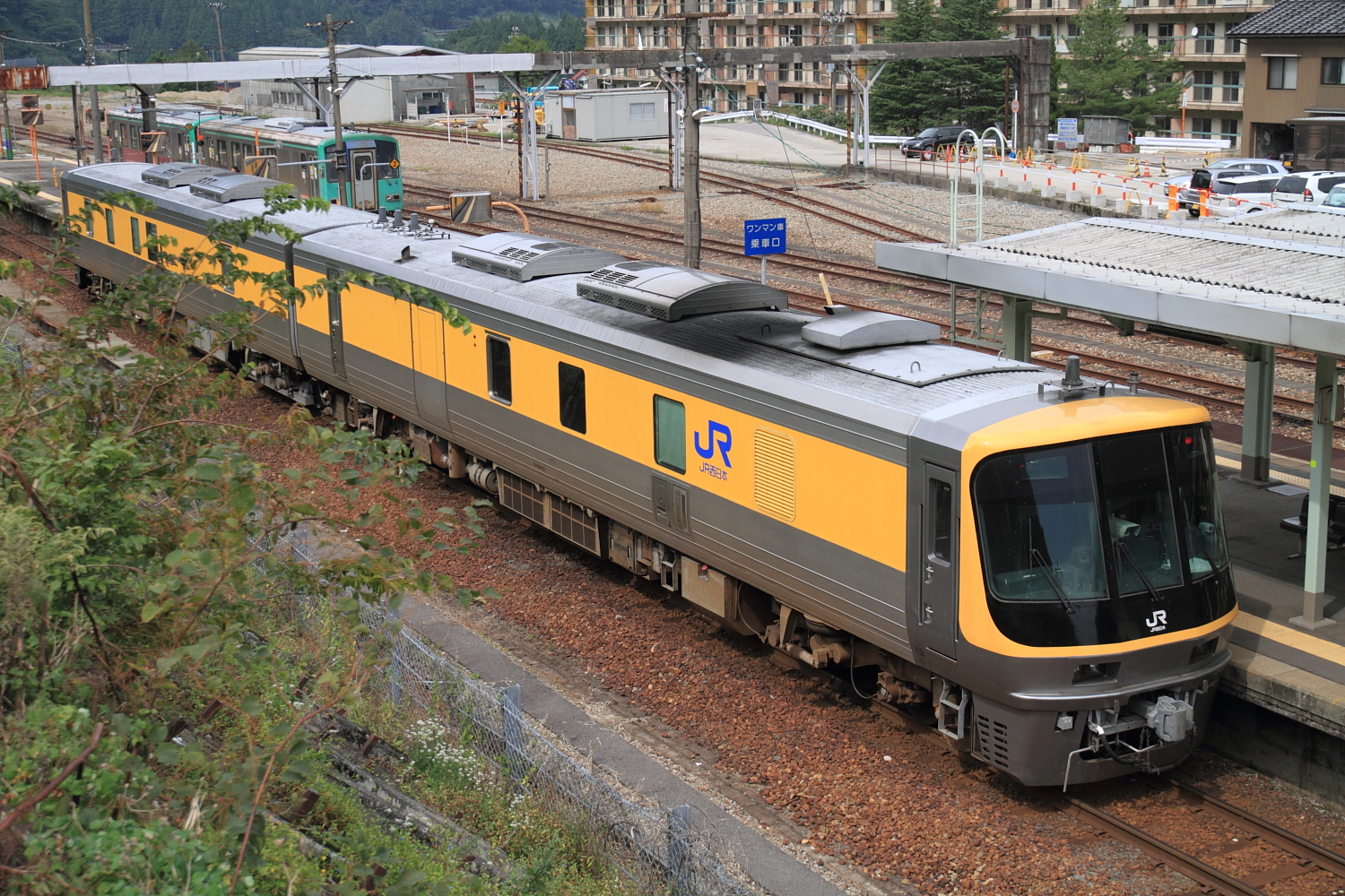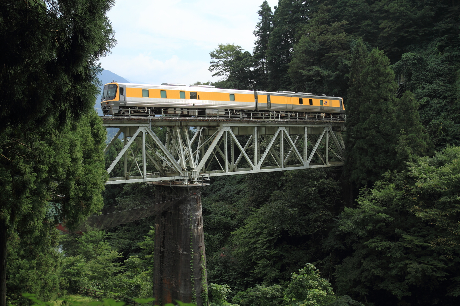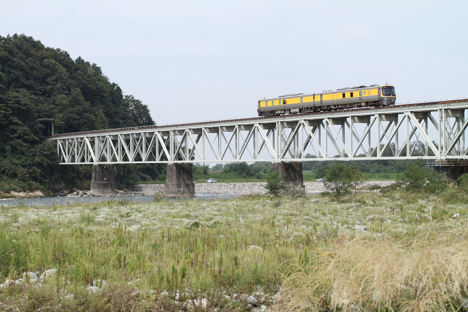【高山本線】JR西、東海検測車【キヤ141】 H25.9.22ドクター東海とキヤ141が同じ日に運転され、猪谷で…… まずはJR西のキヤ141が猪谷へ。高山本線でのキヤ141撮影は初めてかもしれません。笹津で特急ひだ号と行き違いですが、ひだ号が遅れのため先に猪谷へ。 @猪谷猪谷には先にドクター東海さんが到着していました。並び……を、期待していたのですが、残念ながら時刻変更されていて、ドクター東海が発車の数分後、キヤ141が到着しました。 先回りして、山の中で撮影。 ここでキハ58を記録しておかなかったことを後悔しつつ、笹津停車中に先回り。 おなじみの鉄橋で終了。天気が残念でしたが、キヤの良い記録となりました。 [1回]
