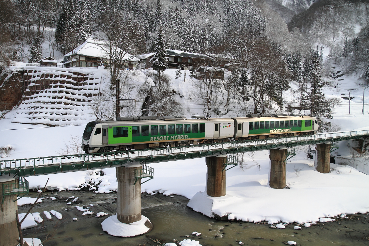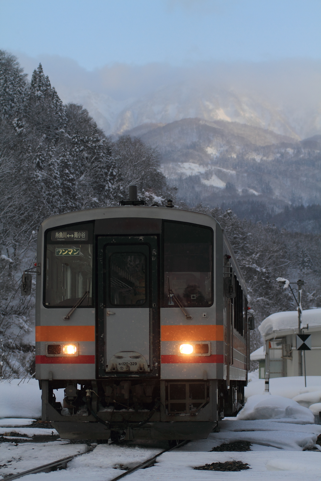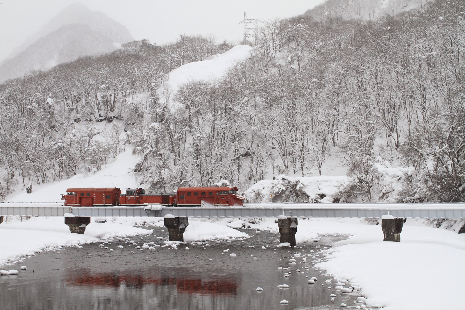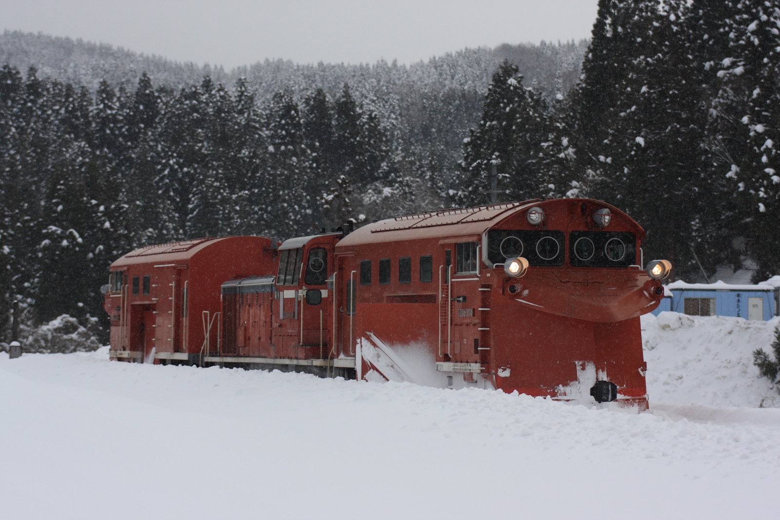 【大糸線】日中の大糸線DD16 304ラッセル撮影2【DD16ラッセル】 H25.1.18またも日中に大糸線DD16 304ラッセルが運転されました。今回は最初から撮影できました。冬の北陸の天気は変わりやすく、運まかせですが晴れました。しかしすぐに天気は雪へと変わります。。少し「ゆるてつ」っぽくなりましたが、ただのミスです。。。。前日にも訪れていたので、雪の量やロケーションは把握済みでスムーズに撮影できました。続いて復路です、、豪快に雪を……とまではいきませんが、除雪している場面です。40Dで撮影ここではサブカメラで広角気味にも撮影。平岩の鉄橋では横から40Dで撮影サブカメラで望遠気味…でもないですね。この場所は直前にキハ120が通過するので雪も少な目で、、、、いやはや、お気に入りのDD16をお腹いっぱい撮影できました。単線式ラッセルというのもローカル感が出て良いです。これからもDD16 304を追い続けます! [0回]