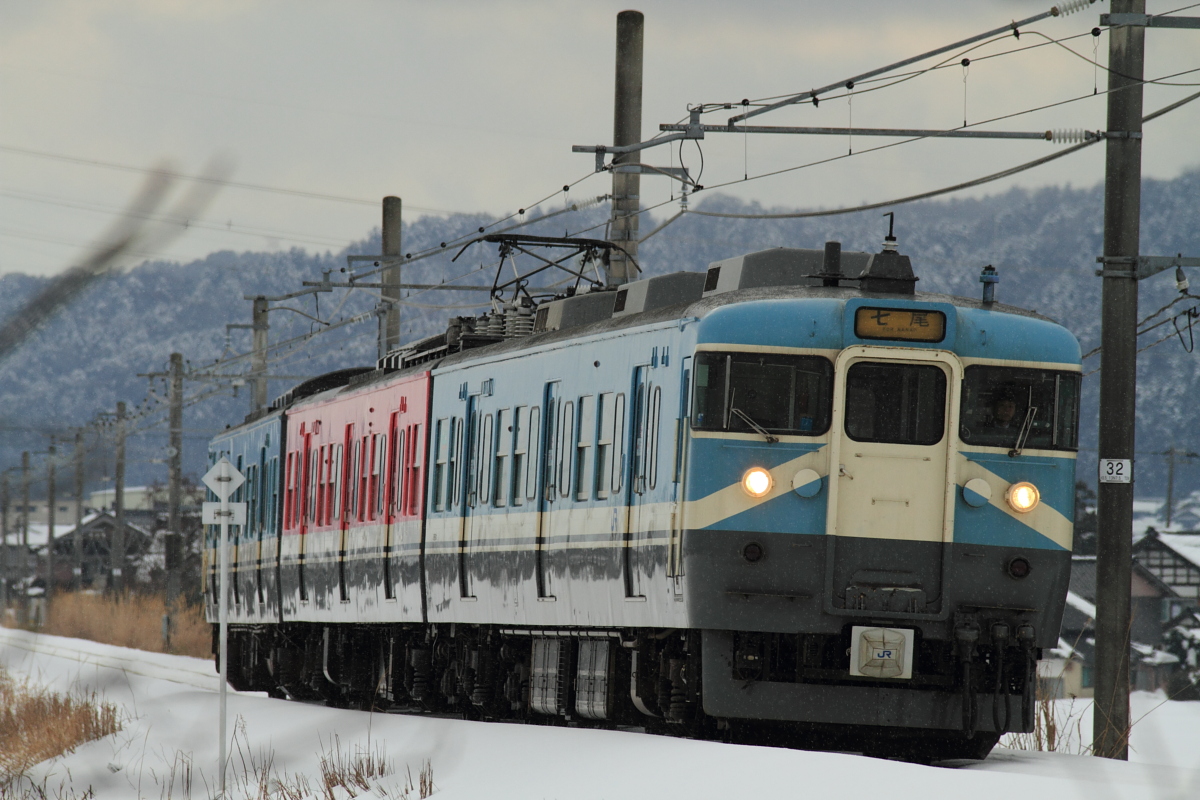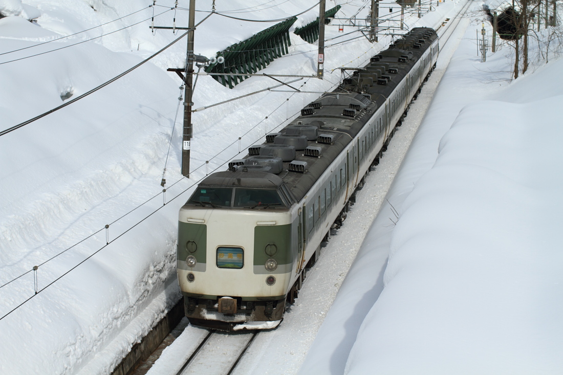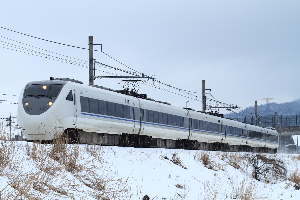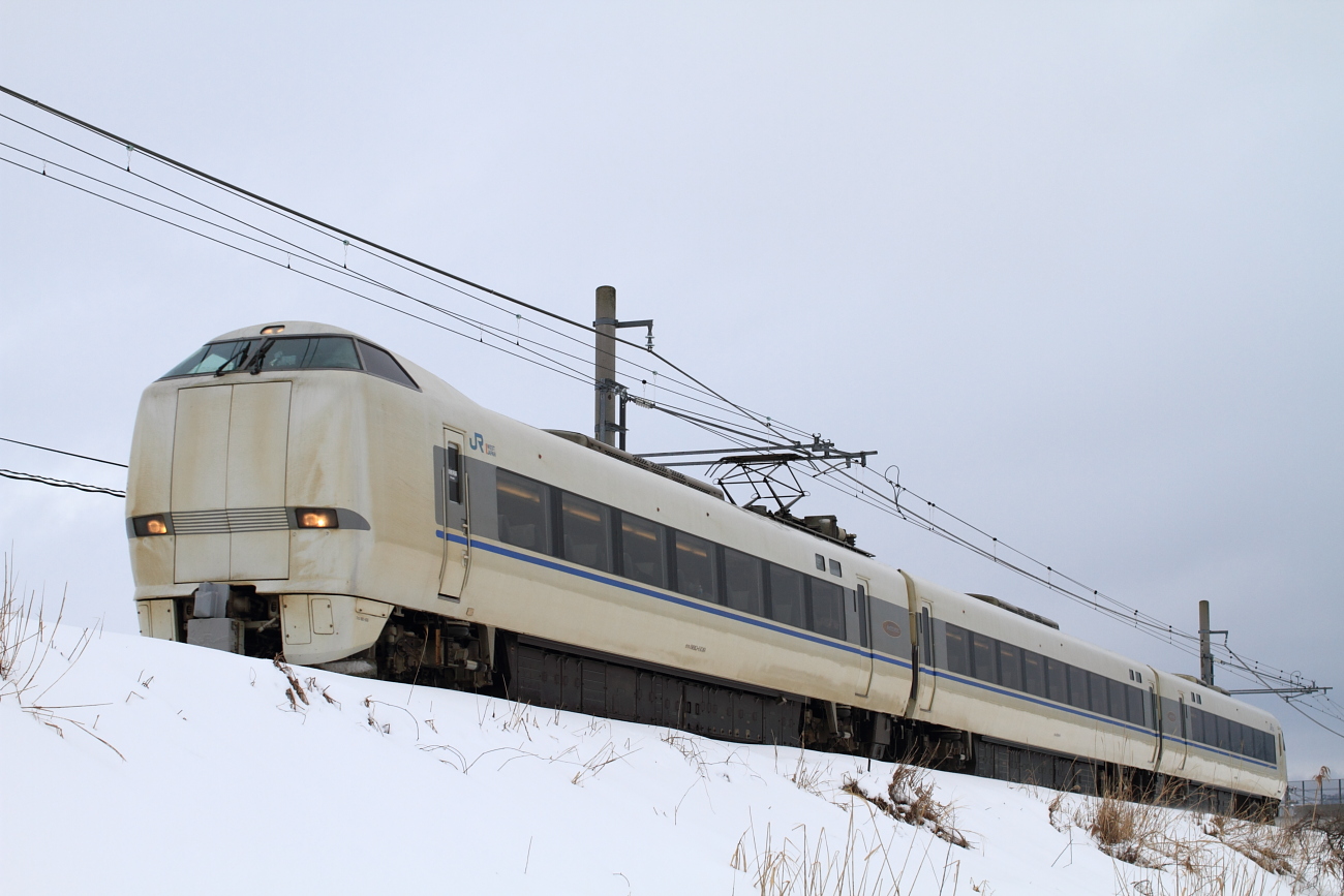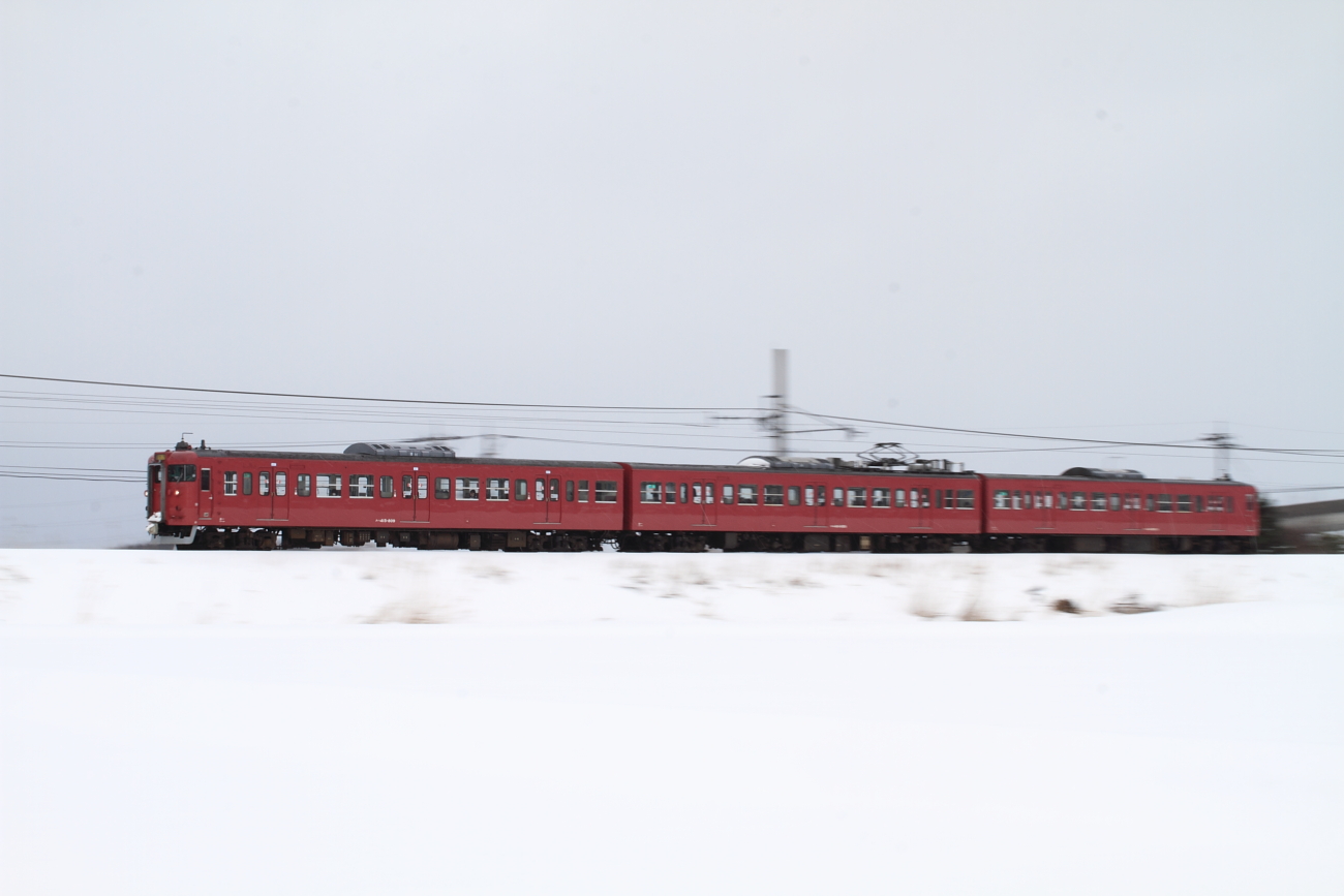 【七尾線】681系W01プロトヘセ、415系C01ヘセ【681系】 10日連日の雪で天気が悪い中、カメラを手に田んぼのあぜ道をズボズボと。能登二宮~良川間はお気に入りです。415系C09ヘセ2036M681系W01プロトヘセ以前もココで撮影した時はプロトでした。3020M(はくたか21号金沢行き)はくたか21号はダイヤ乱れのため、金沢で打ち切り。415系C01ヘセC01ヘセはまだ原色。七尾方の屋根が特徴的。この寒波はいつまで続くのか… [0回]
