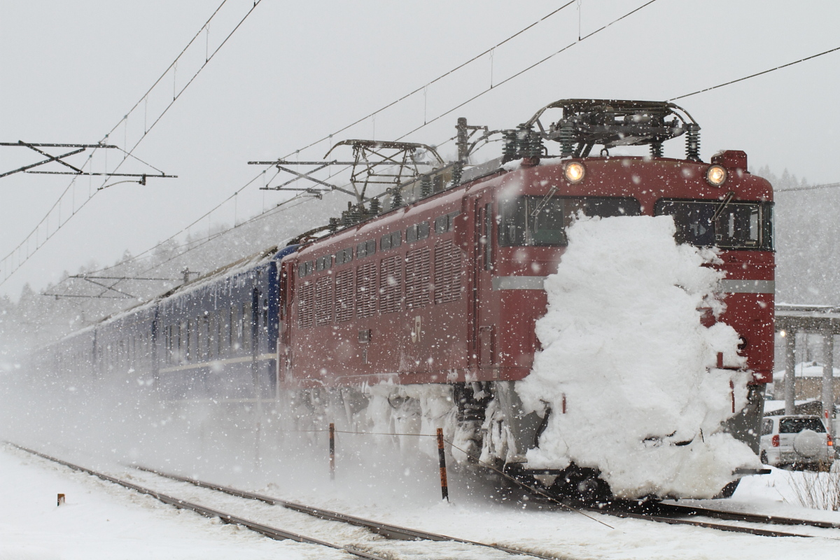 【北陸本線】雪だるまEF81-108【日本海】 29日ここ最近、運休しまくりな「寝台特急日本海号」。やっと走っても、大幅遅れ。今年も雪は多いですね。4002レ@倶利伽羅~津幡HMは全く見えず。。。。この雪、ポイント不転換の原因だ、、521系試運転3月の改正から521系は富山行きにも充当されます。475系も廃車が増えるか… [0回]