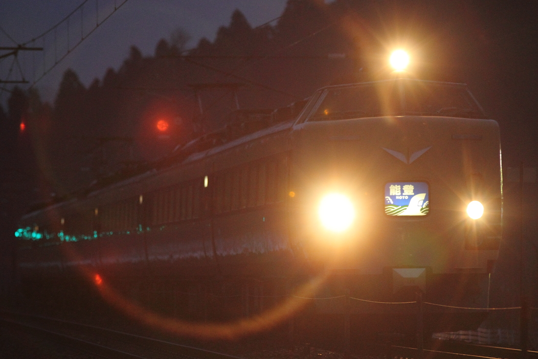【さよなら能登】最終急行能登号【485系】 25日また1つ、名列車が廃止となりました。 急行「能登」(上野~金沢間) 489系での定期運転が終了し、485系6両(新潟車)で細々と金曜の夜出発限定で走り続けてきた「能登」号がついに臨時運転をも終了した。 最終(2月24日発)の能登は露出のない中の撮影でした。4002レ寝台特急日本海号@倶利伽羅~津幡8601M急行能登号@倶利伽羅~津幡…とはいうものの、廃止とは発表はされていない。 現時点ではGWにも運転無しとなっているので、復活は厳しい… 長く続いた「能登」号 489系でのリバイバル運転に期待!! [0回]PR