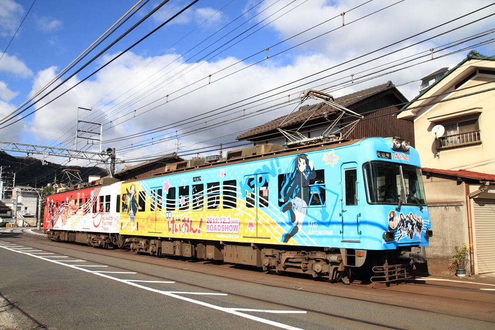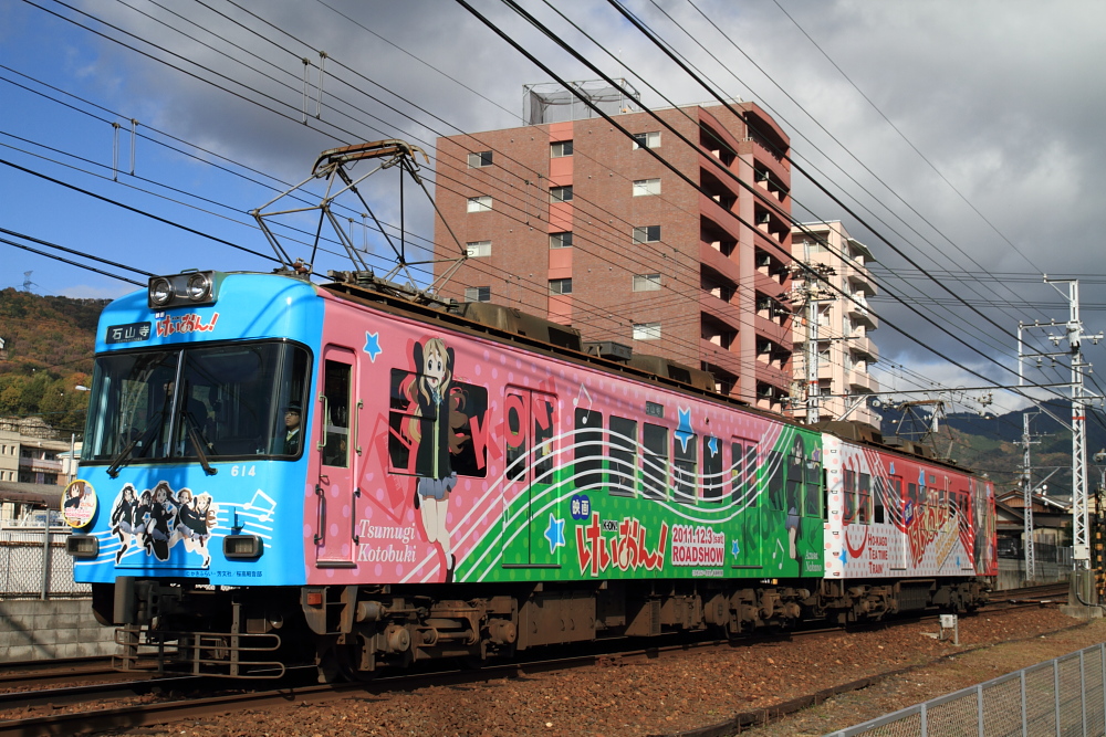 【京阪】けいはん!【けいおん!】 26日きたぐに・日本海号撮影の後は、まもなく映画の「けいおん」の大津線へ。500円で乗り放題きっぷが。晴れたり曇ったり。いろんなラッピング、HMがあっておもしろい。けいおん!な、けいはん!紅葉も綺麗でした。京阪など関西の私鉄は全く乗ったことがないので、これからいろいろ乗ってみたいです。EF65-1040@石山 [0回]