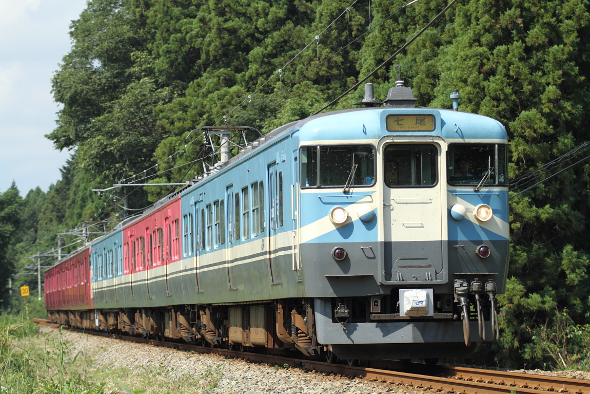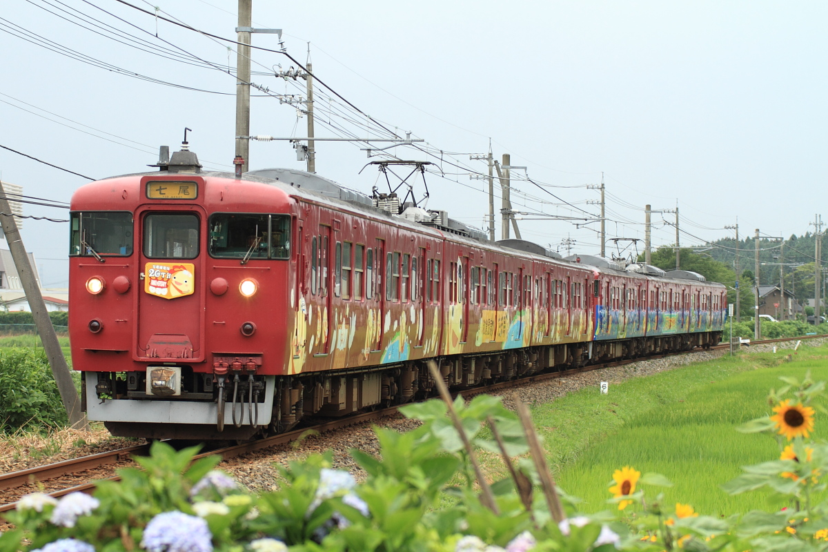 【七尾線】七尾線電化20周年記念4【415系】 13日最近、天気が良すぎです。今日は朝の撮影。今まで、6連415系を狙った事がなかった気がします。831M@徳田~七尾今の七尾線は、ラッピング3種・旧塗装・新塗装と大きく分けて5種類。旧塗装は数を減らしつつ、クーラーの違いなど様々。415系は全11編成です。七尾線をどんどん盛り上げていく計画進行中です!! [1回]