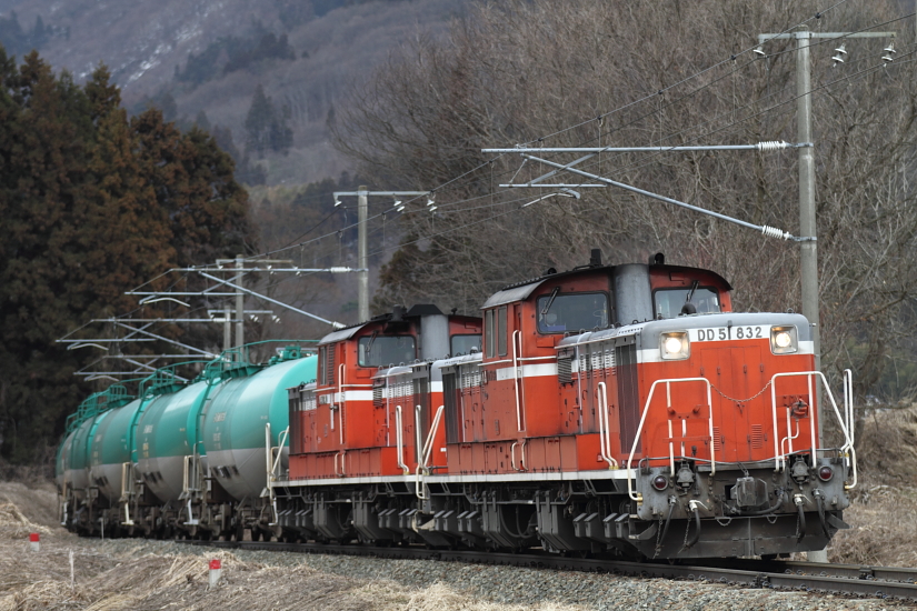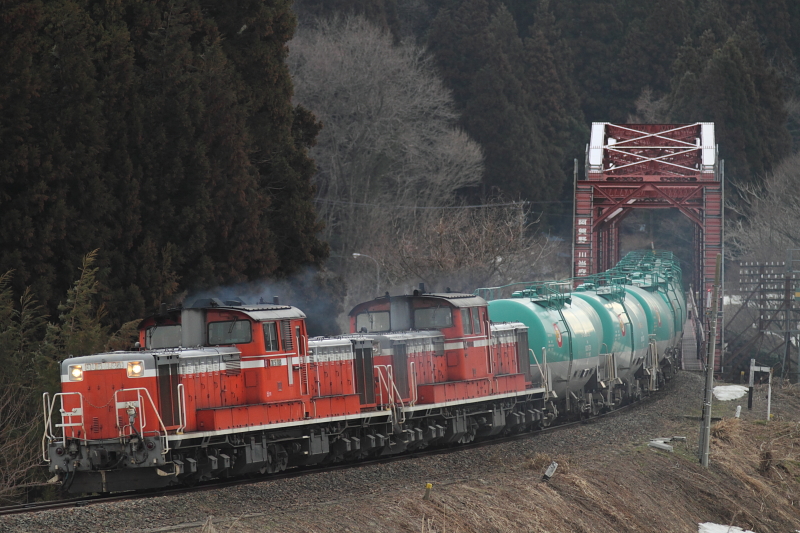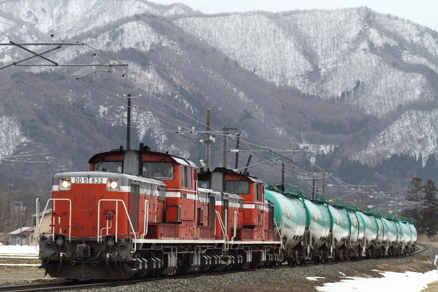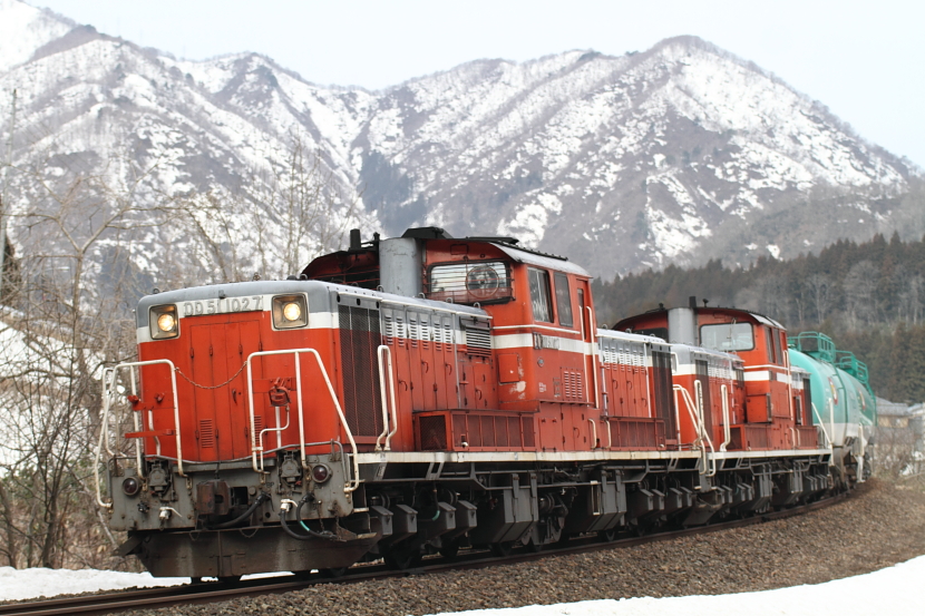 【磐越西線】臨時石油輸送列車【DD51重連】 3日根岸から新潟周りの石油輸送を撮影。磐越西線内では1日2往復運転され、タキ10両を各地から集められたDD51が重連で牽引しています。9294レDD51-1027(吹)+DD51-833(門)+タキ10@五十島~三川9294レ@山都~喜多方9294レDD51-833(門)+DD51-1027(吹)タキ10@東長原~磐梯町9293レDD51-832(愛)+DD51-1188(吹)+タキ10@川桁~猪苗代9293レ@磐梯町~東長原9293レDD51-1188(吹)+DD51-832(愛)+タキ10@豊実~日出谷9293レ@猿和田~五泉最近、よくDD51を撮影している気がする。 [0回]