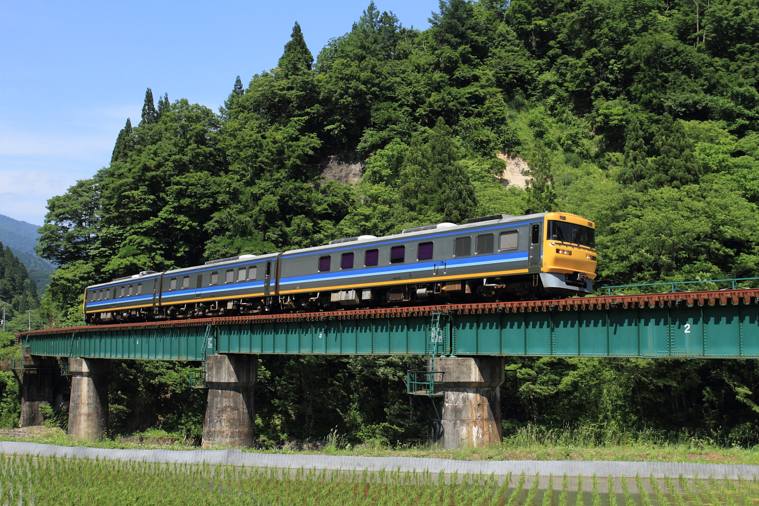 【高山本線】検測車撮影(ドクター東海DR1)【キヤ95】 H29.6.19早朝の撮影から帰宅し、今度はのんびり高山本線へ。岐阜と富山の県境で先行する特急ひだ号を待っていると、偶然友人と合流。同業さんも居て、待つども列車は来ず…この県境はトンネルの間にあり、電波も入らないので情報も取れず、仕方なく友人と高山方面へ場所移動。すると焼石〜下呂付近での落石検知動作での約60分遅れとの情報を得た直後、前から前照灯が。 1023D(ひだ3号)@打保〜杉原なんとか記録。そしてすぐ続行で検測車通過。 試9835Dドクター東海ことキヤ95でDR1編成でした。閉そく信号機のある高山本線ならではの単線続行運転でした。少しだけ移動し、復路は順光で。 試9836D@打保〜杉原良いお天気の中、ロケーションの良い高山本線での撮影は癒されます。 [0回]