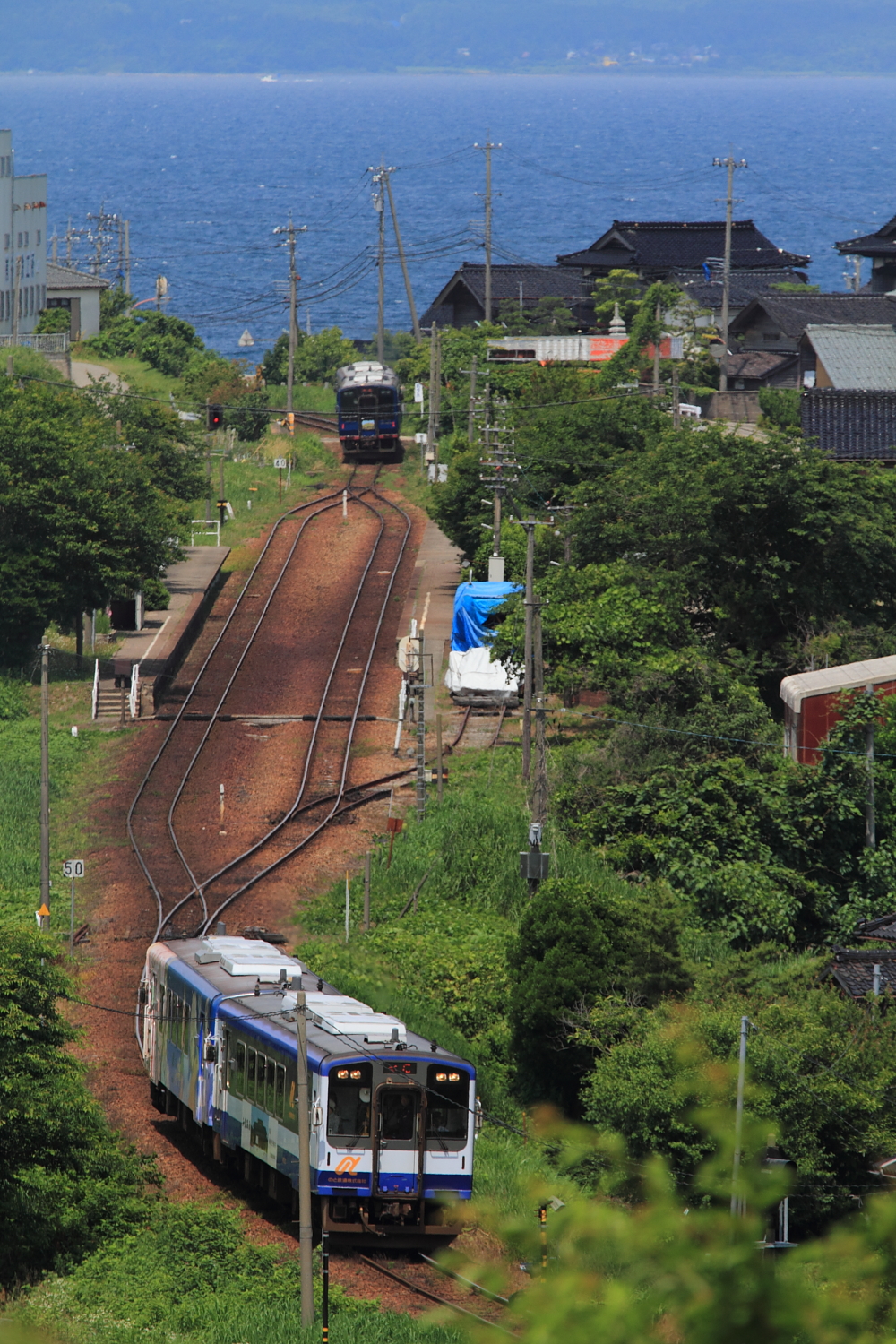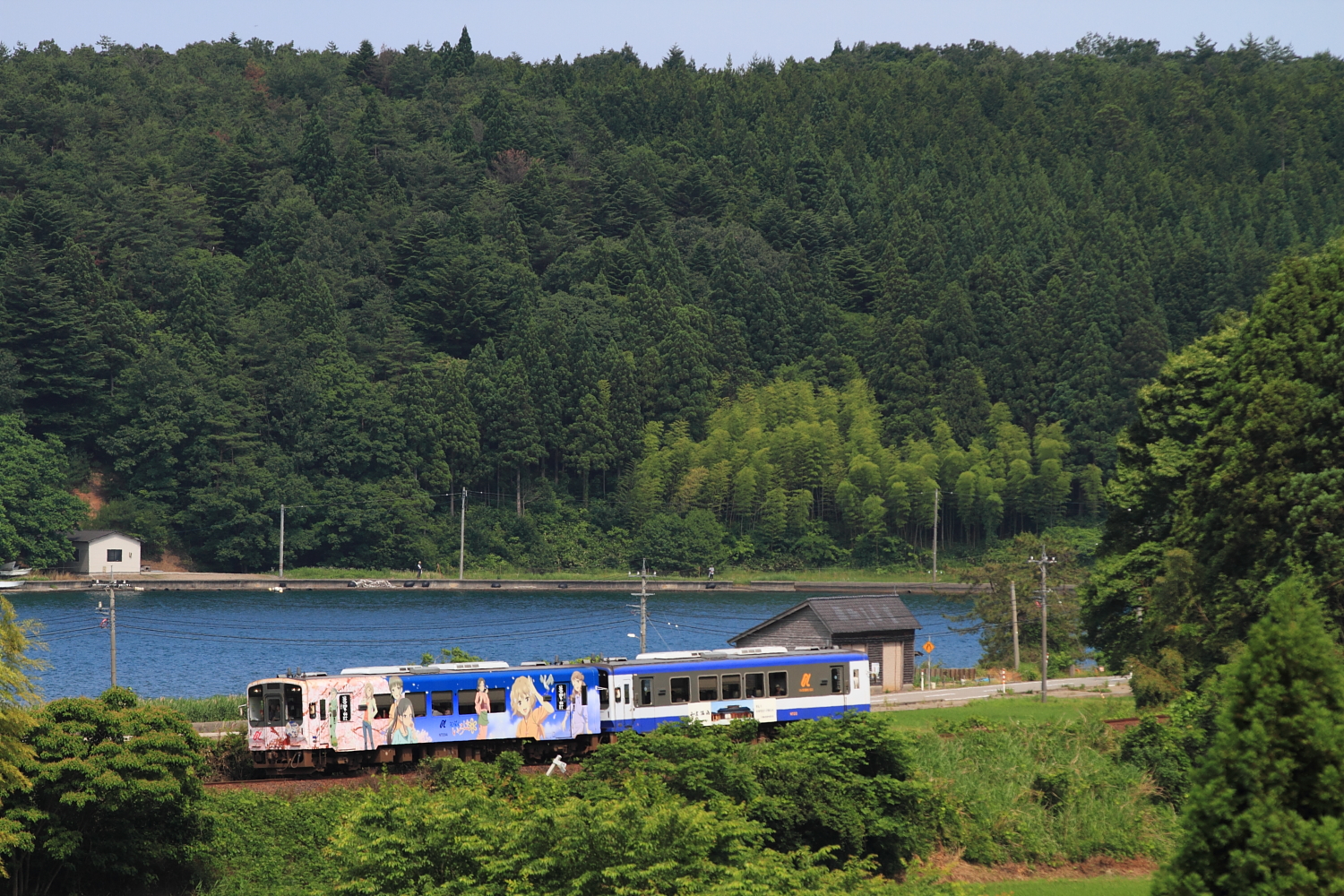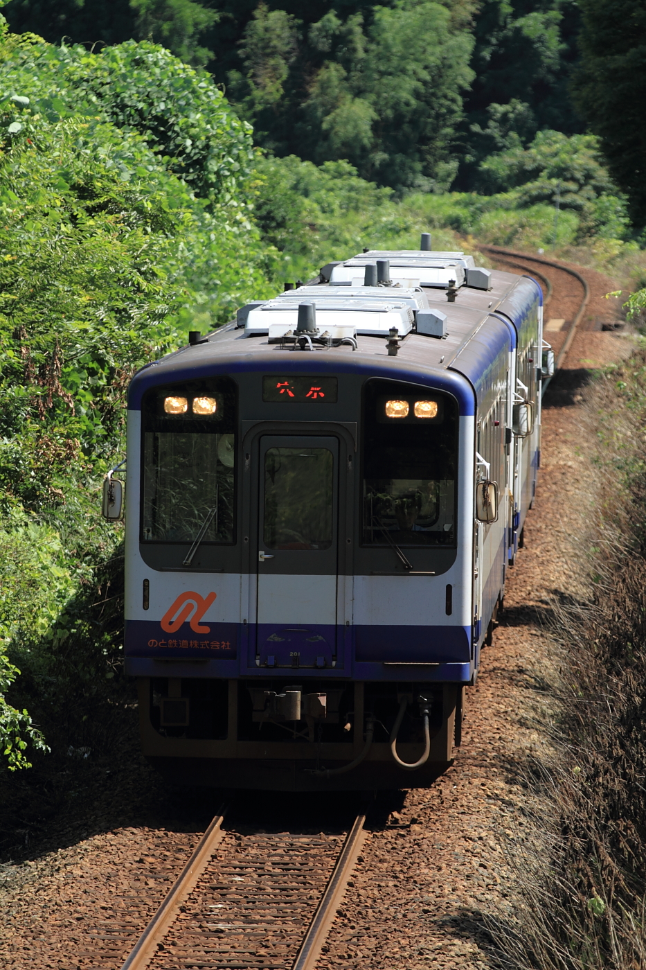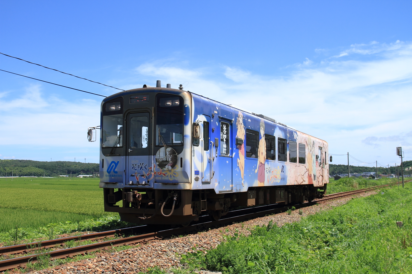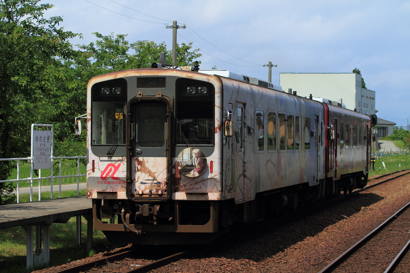 【のと鉄道】花咲くいろはラッピング列車 35【NT204】 H29.6.26ぶらり、のと鉄道撮影。お天気が微妙だったので、山の中で。 602D(のと里山里海52号)@能登中島〜西岸この後もいろいろ撮影するも、天気がイマイチ。ホームページ見ても夕方まで「花いろ」編成はでて来ないようなので、温泉へ…と思ったら、131DがNT204で通過。運用的にお昼以降も動きそうなので、とりあえず「なかじま猿田彦温泉いやしの湯」でほっこり+ランチをしてロケハン。西岸駅の俯瞰ポイントを探し出し、待機。 @西岸お天気も良くなり、前々から気になっていた西岸俯瞰で記録。しかし、NT204は136Dの次位に連結。そして折り返しまで約1時間あるので西岸駅でのんびりしていると、列車接近。 135D@西岸NT202も運用に入っていたようです。増結運用なのか、これも気がつきませんでした。。 137D@能登中島〜西岸最後はこちらも今回初の場所で撮影。薄曇りになってしまいましたが、この場所も2両なら良い感じですね。魅力たっぷりの「のと鉄道」、もう少し四季を取り入れた記録もしてみましょうかね。 [4回]