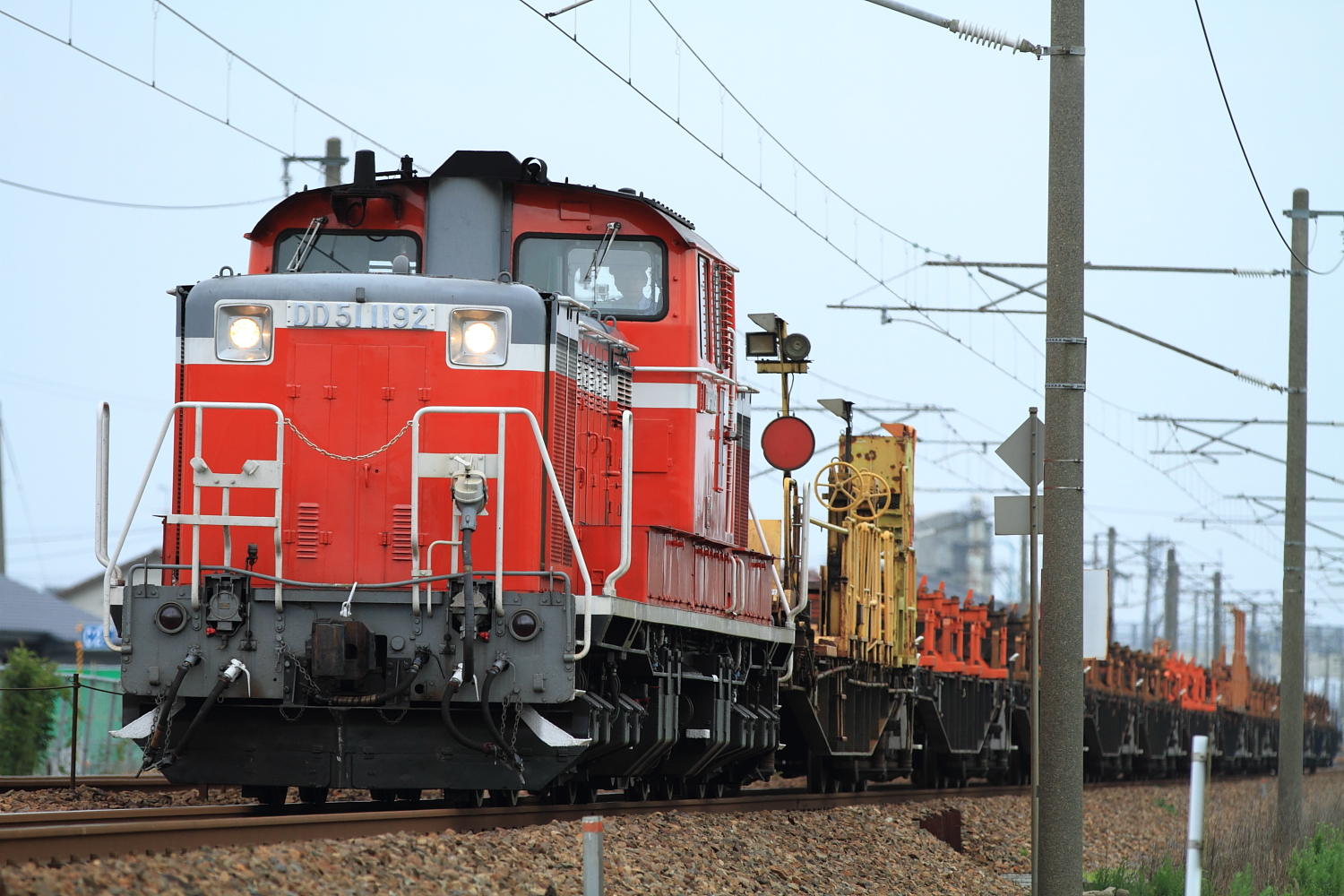【北陸本線】工9588レ(DD51 1192号機牽引)ロングチキ撮影【DD51】 H29.7.16いろいろあって、久々の撮影でした。お天気がイマイチの中、ロングチキ返空を撮影。 工9588@明峰〜能美根上DD51 1192号機牽引でした。ステップに白差が入ったDD51の工9588は初めて撮影しましたが、またもカツカツ。いつもロングは長さを読み違える…そもそも、今回は時間もなく手持ちで傾き、、、んー残念。 [0回]