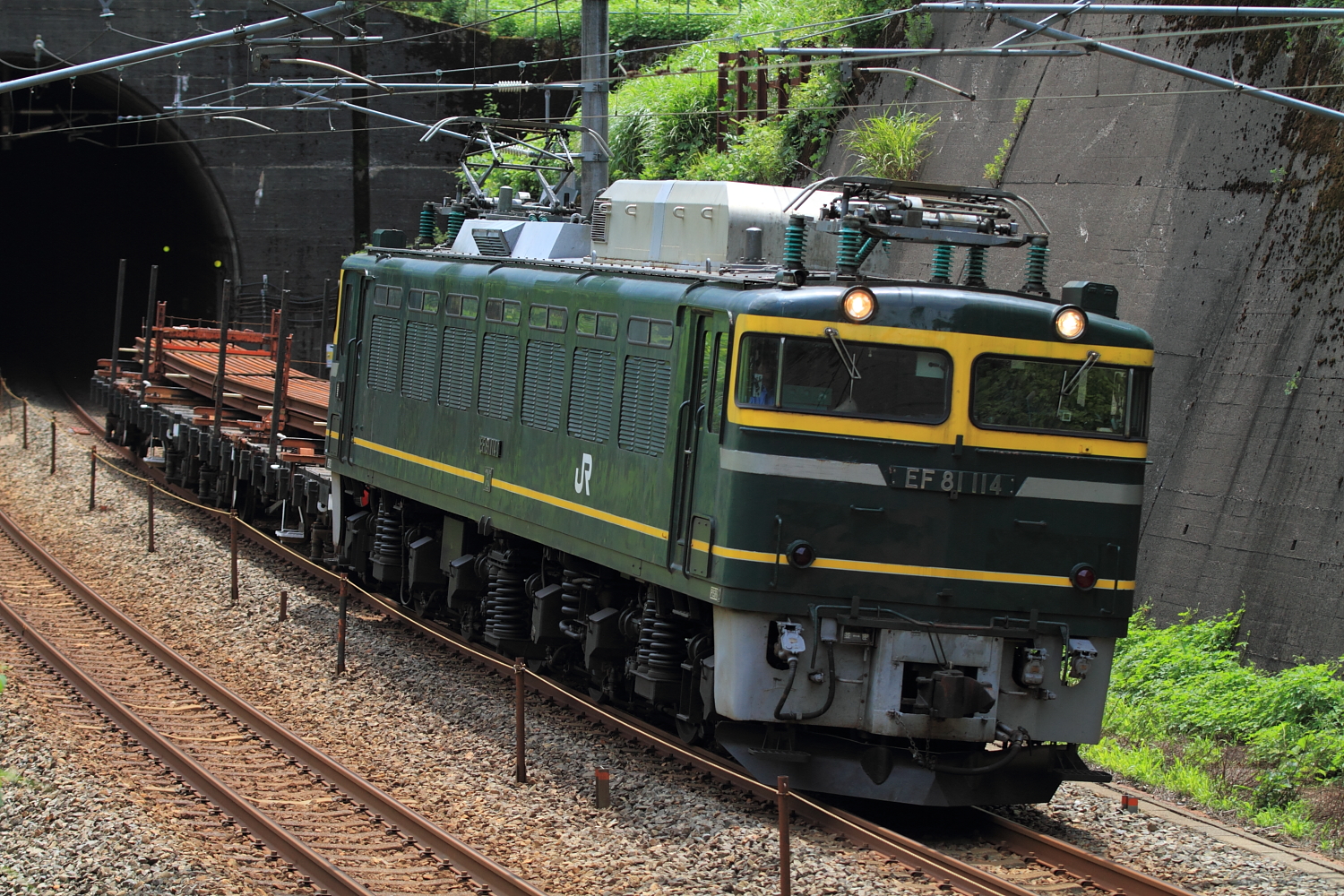 【北陸本線】工9571レ (EF81 114号機牽引)チキ2B撮影【EF81】 粟津行きのチキ2両工臨を撮影。 工9571@牛ノ谷〜大聖寺EF81 114号機牽引でした。今回は大量の古レールを積載。粟津で単機になり、小松折り返しで返却。 単9574@大聖寺〜加賀温泉敦賀EF81の単機も貴重な記録になりつつあるので、様々なパターンで撮影しておきたいところです。 [0回]