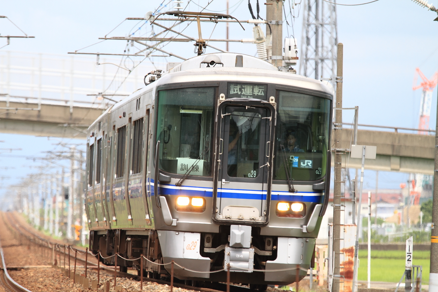 【北陸本線】乗務員訓練の試運転撮影【521系】 H29.7.18工臨とほぼ同じ時刻で試運転があったので撮影。…の前にやってきた普通列車が… …なぜ新快速なのでしょうか、、と適当に遊んでいるといつのまにか接近していて構図ミス。 試9620M@大聖寺〜加賀温泉試運転はこの直後に急停止。各区間で様々な訓練をしながら走行しているようですね。 [0回]