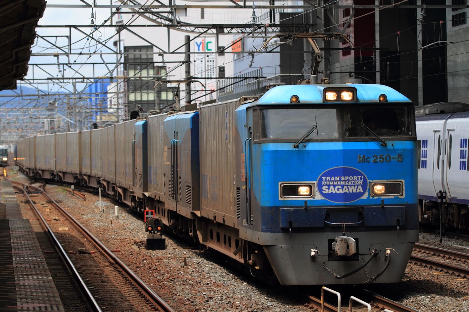 【東海道本線】5032Mと50レ撮影【285系・M250系】 H29.7.27特にノープランで4002Mに乗車し、京都へ向かっていると昨晩に架線トラブルで運転を見合わせているとの情報が。東海道本線瀬田駅付近で発生しており、下り線のみ運転再開をしたところで京都に到着。すでに回送扱いとなっていた、上り5032M(285系サンライズエクスプレス号)が茨木駅停車中だったので復旧を待ち撮影。 5032M@山崎〜島本サントリーバックで285系14両を撮影。京都駅の番線輻輳が激しく、先回りできたので山科でもう1発。 5032M@山科〜京都久々に285系を14両で撮影した気がします。特に予定は決めてなかったので、地下鉄に乗り六地蔵経由で奈良へ向かっていた際に50レ(スーパーレールカーゴ)の情報が。すぐさま奈良線で京都へ向かうとなんとか間に合い撮影。 50レ@京都〜西大路M250系は初めての撮影でした。結局、ダイヤ乱れで予定していたサンダーバード号がウヤになり、1本早い列車に変更したので滞在時間はわずかとなりましたが、貴重な記録ができました。 [0回]