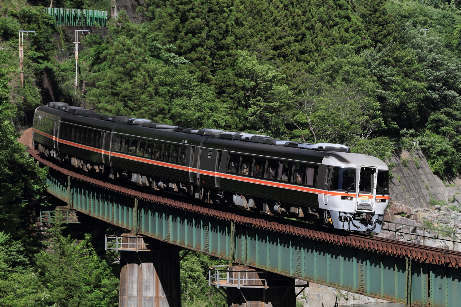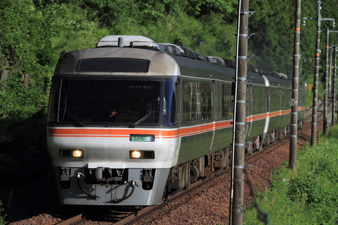 【高山本線】急行ぬくもり飛騨路号・WVひだ号撮影【キハ85】 H29.5.27木曽路を満喫後、坂下から下呂へ抜ける途中の街で中華ランチや道の駅でまったり……と、あっという間に時間が過ぎ慌てて沿線へ。 9012D(急行ぬくもり飛騨路号)@焼石〜下呂下呂での長時間停車で2発のつもりがこの1発のみに。今では珍しい、急行列車でヘッドマークも用意されています。続いてローカルとキハ85の特急飛騨ひだ号を撮影。 1718C@下呂〜禅昌寺 36D@下呂〜禅昌寺堂々、10両編成のキハ85は圧巻でした。この列車は大阪行き編成も連結され、面白い編成ですね。 1033D@禅昌寺〜飛騨萩原こちらは富山行き編成の連結。 38D@上呂〜飛騨宮田曇ってしまいましたが、最後に基本編成のようなひだ号で締め。バリエーション豊かなキハ85も面白いですね。高山本線もロケーションが良いので、中央西線と掛け持ちで撮影し続けたいです。 [0回]