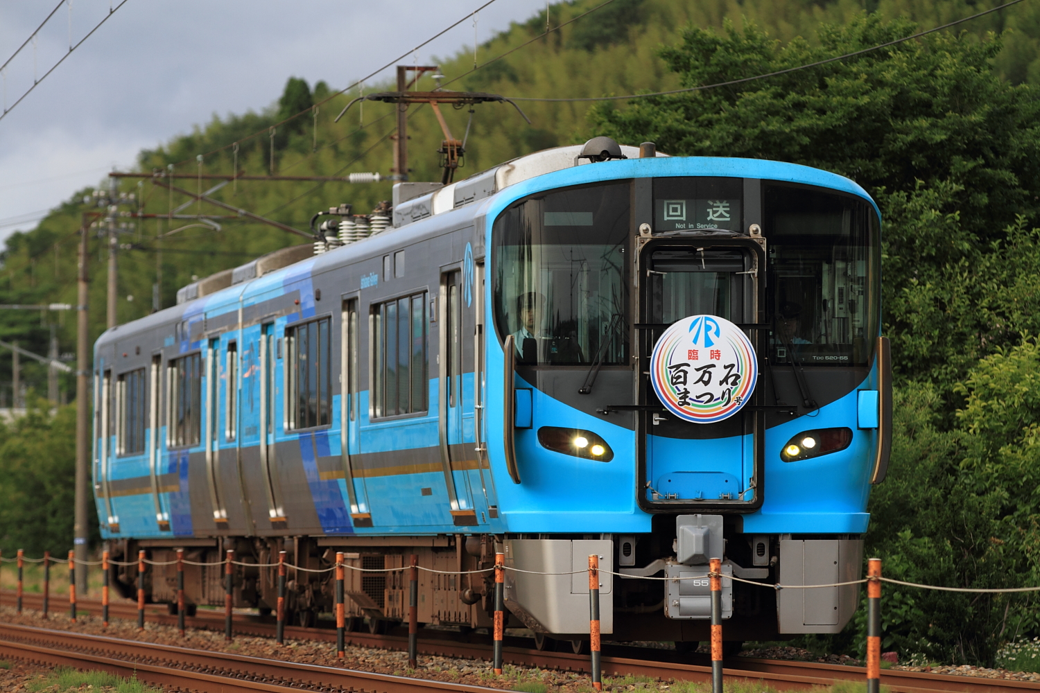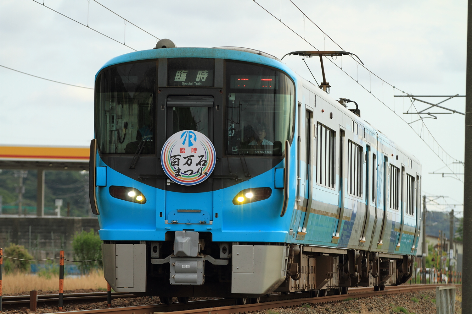 【IRいしかわ鉄道】臨時「百万石まつり号」撮影【521系】 H29.6.3金沢で開催された、第66回金沢百万石まつりに合わせ、金沢〜津幡間で臨時普通列車が運転されました。昨年同様のヘッドマークが前後に付けられ、2往復(片道回送)運転されました。 9723M@森本〜津幡時間の関係上、津幡行きのみ撮影。行き先幕は「臨時」でした。 回9724M@森本〜津幡津幡ですぐ折り返し、「回送」列車となり金沢へ。大きめのヘッドマークを付けた521系もなかなか良いですね。 [0回]
