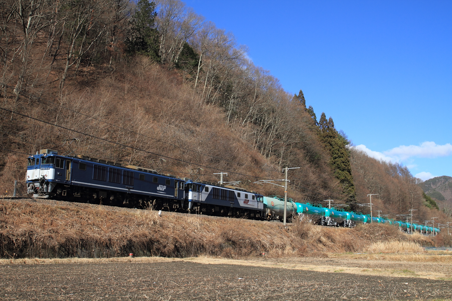 【中央本(西)線】ロクヨン重連貨物撮影13【EF64】 H28.1.16いつものルートで、冬の中央本線EF64を撮影。今年は暖冬で、ほとんど雪がない。 6883レ@大桑〜須原EF64 1037+EF64 1006号機牽引でした。残念ながら原色は次位に。この時期は影も多く、手前は影で広角気味では撮れませんでした。そして塩尻方面へ新たな撮影地を開拓すべく移動。 383系しなの号この場所で6883レを狙うも設定ミス、撃沈。さらに塩尻方面へ向かい3084レをと思ったら間に合わず…。塩尻の焼肉「ぶう」でランチをして、大糸線撮影へと続きます。 [3回]